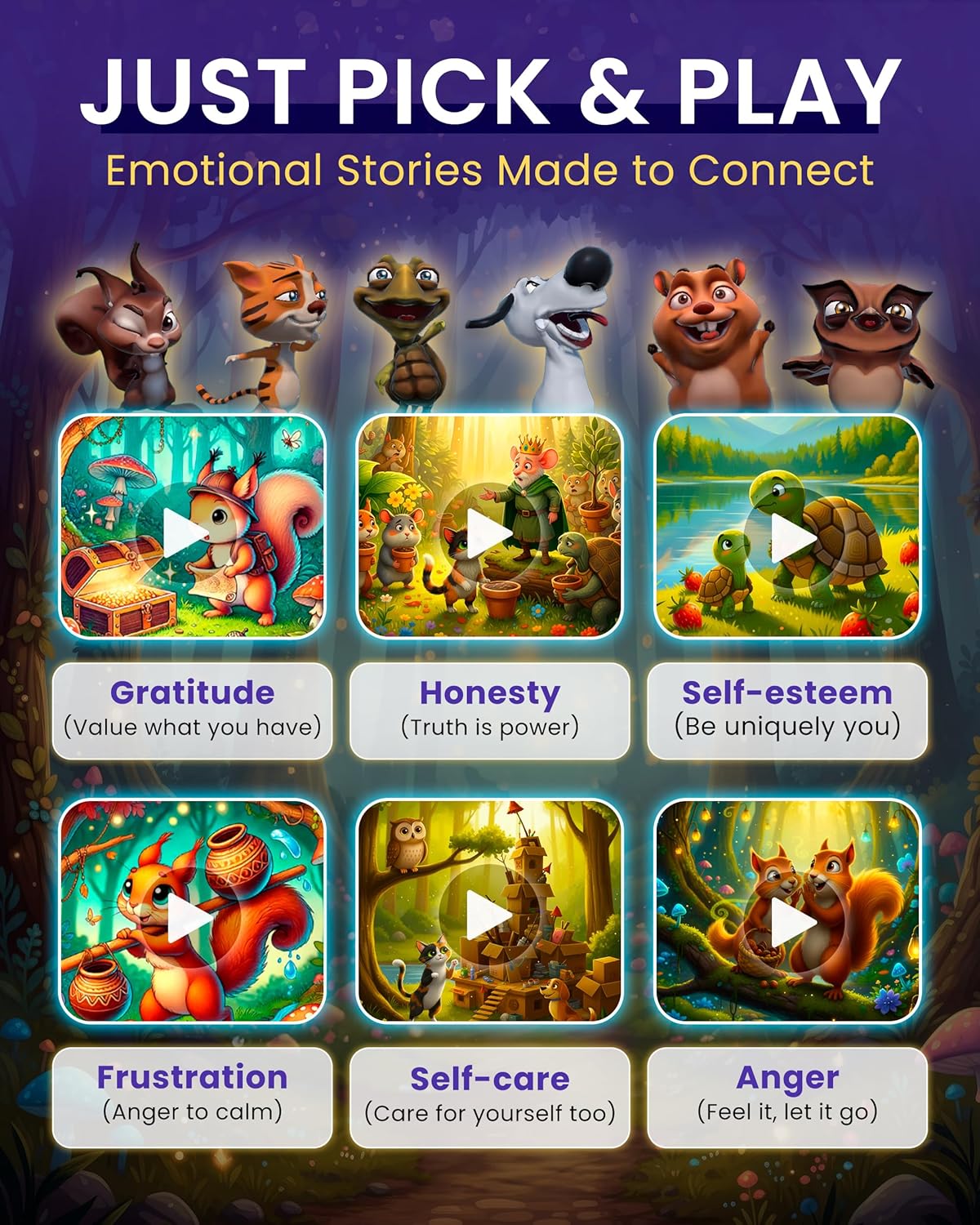 • โค๏ธ HELPS KIDS MANAGE THEIR EMOTIONS: What do you do when they get frustrated or lose confidence in themselves? Research is clear: emotional intelligence matters. 3D holographic stories about frustration, anger, self-esteem, gratitude, honesty, resilience...