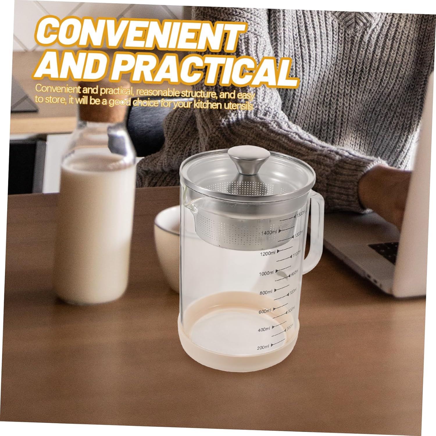Package List 1 x Soybean Milk Filter Features -Capacity: 1500ml milk strainer cup -Size:17.00X12.00X21.50cm/6.68X4.72X8.45in pitcher with strainer -Color:Multi juice strainer container -Material:Stainless steel, glass, silicone strainer - The strainer is fine and gentle, which can easily help you filter the residue, and better meet your needs juice container with strainer. - Easy to use, easy to clean, mesh strainer can bring more convenience to your use, a kitchen helper juice filter strainer. - Convenient and , reasonable structure, and easy to store, a choice for your kitchen utensils tea filter strainer. - Mainly made of reliable and material, the strainer is strong and , not easy to deform filter strainer. - With reasonable structure design, the mesh is denser and the filtering effect is better milk strainer.Goods Descriptionjuice strainer fine mesh With large capacity, it can storage soybean milk or other liquid food container.juice strainer container Scientific construction structure design, very convenient and easy to clean.juice filter strainer This storage pot is made of materials, and for longtime to use