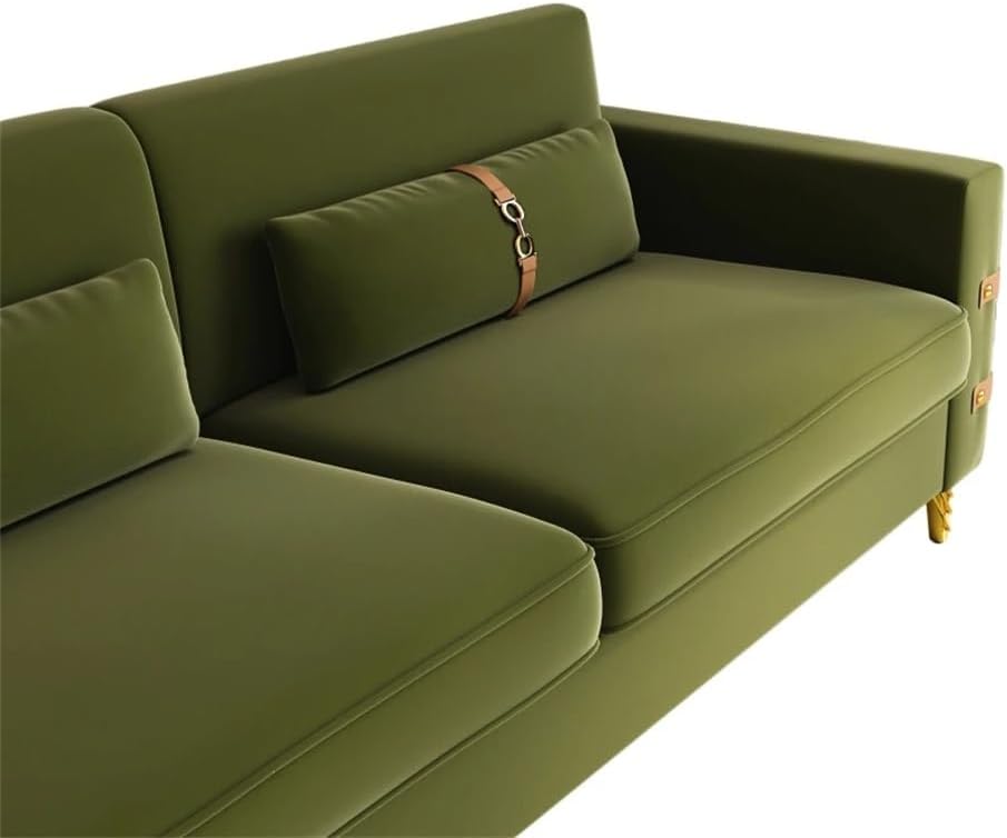 Expertly upholstered in premium quality velvet fabric - The plush texture of this velvet creates a rich and luxurious feelPlush multi density foam fill allows for a soft yet supportive seat – You and your guests will relax in comfort and Sitting between contemporary and traditional, transitional design provides immense aesthetic versatility to be used within virtually any decoration.Whether you're stretching out after a long day at work, enjoying a movie night, or engaging in a discussion with your friend, this sofa supports the sweet time of being at home with thea you loveFeel free to relax on the sofa with the certainty that you’re well supported; stainless steel legs and wooden frame help offer a max. load of 750 lb; footpads included protect your floors from scratches.Cover Material: VelvetPieces Included1 Sofa, (no other presentation items included).Notice:1. Due to manual measurement, please allow 2-3% error, before you bid, please make sure you don't mind.2. The color may vary due to different displays, please refer to the actual product.