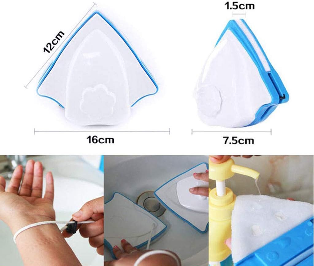 Specifications:Product Type: Double-sided window cleanerOccasion: family, office, etc.Material: plastic + magnetic + rubberFeatures:1. Magnetic double-sided window cleaner, Practical sturdy, drop-proof and .2. Anti-pinch hand design, Clean windows quickly and efficiently.3. The triangle is cleaner, more complete, and has no dead ends, also clean and dry the sides of the window.4. Triangular breakage design reduces frictional resistance, You can get twice the result with half the effort.5. Can be used for sliding doors, windows, windows, shower screens, mirrors, any glass surface.Multi-purpose Glass Scraper: The glass scraper is ideal for cleaning the glass palette, oven, cooktop, ceramic top, and glass stove. Also is a sticker remover, which can help you remove stickers, decals, glued characters, labels, paint, paper, and carpet glue off the window