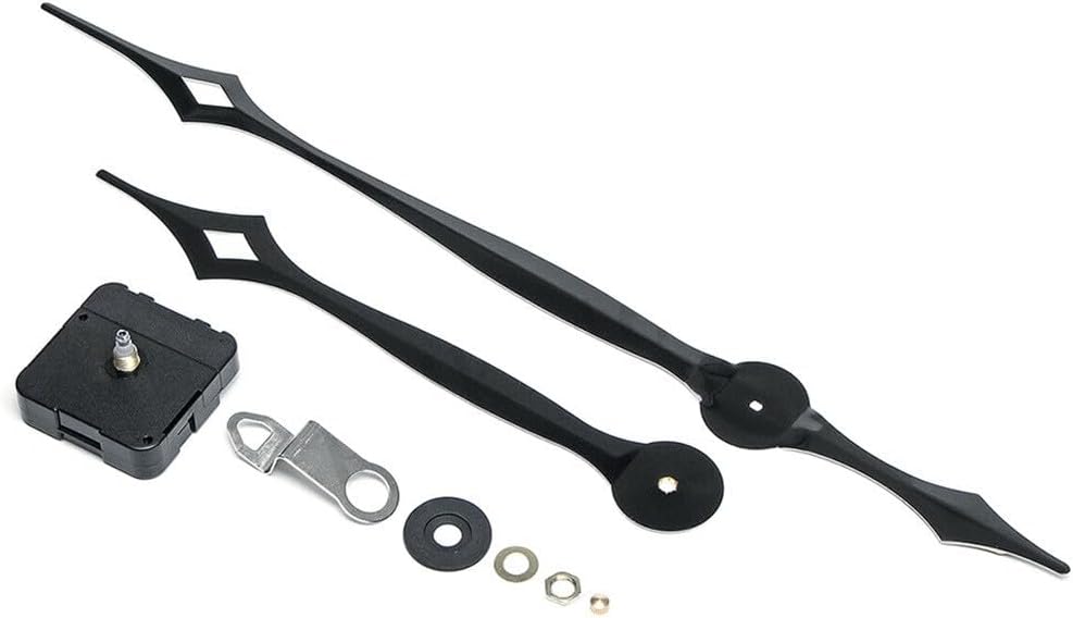 Product description Features:*DIY Clock Movement: This set includes a complete quartz clock mechanism that is good for DIY enthusiasts looking to repair or create their own wall clock, offering versatility for various projects. *High Torque Performance: Designed with a high torque movement, this mechanism can drive long clock hands effectively, accurate timekeeping for larger clock designs. *Easy Installation: The simple design of the clock movement makes it user-friendly, allowing for quick and hassle-free installation, perfect for both beginners and experienced crafters. * for Versatile Replacement: This kit serves as an essential replacement for large and thick clock frames, making it a practical choice for repairs or new creations that require reliable clock parts. *Installation Tips: For optimal performance, that the hour hand and minute hand are parallel during installation, and avoid applying excessive pressure to prevent bending.Specifications:*Part Name:Quartz Clock Movement Set*Material:Plastics*Size:56x56x16mm(Clock Mechanism)*Color:Black*Shaft length: 17mm; 20mm; 23mm; 28mm*Thread: 8mm; 11mm; 11mm; 15mm*Hour hand: 256mm*Minute hand: 430mmPackage Content:1 x Clock Mechanism1 x Hour hand1 x Minute hand1 x Second dot Manufacturer Contact Information no