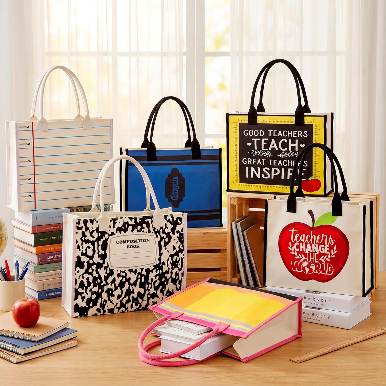 Features: These bags are not only washable but also reusable. By choosing these durable totes, teachers can contribute to sustainability while enjoying a reliable and stylish accessory. With enough space to store everything from wallets to phones, these tote bags meet various needs, making them suitable for different activities. They effortlessly accommodate personal belongings, ensuring convenience in every scenario. Specifications: Material: canvas Color: multiple colors Size: about 15.75 x 11.81 x 5.91 inches/ 40 x 30 x 15 cm Package includes: 6 x Teachers Canvas Tote Bags Notes: Manual measurement, please allow slight errors on size. The color may exist a slight difference due to different screen displays