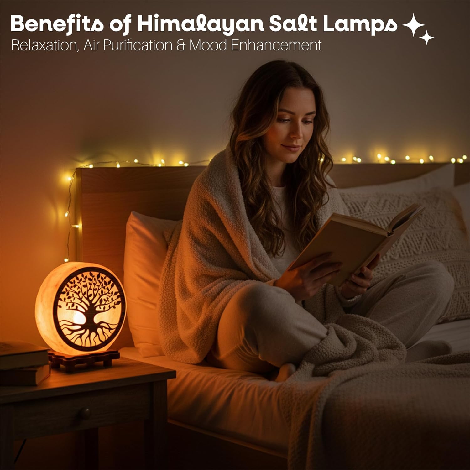 Bring natural beauty and peaceful energy into your space with this 4.5-inch Himalayan Salt Lamp featuring a stunning Tree of Life design. Hand-carved from authentic Himalayan pink salt crystals, each piece emits a warm, soothing amber glow that enhances relaxation, improves ambiance, and elevates the décor of any room. Ideal for bedrooms, living rooms, meditation corners, yoga studios, offices, or as a comforting night lamp. The Tree of Life carving symbolizes harmony, strength, and positive energy—making this lamp a meaningful gift for loved ones. Mounted on a durable wooden base and powered with a safe, UL-certified cord, this small yet powerful salt lamp blends artistry with natural wellness benefits.