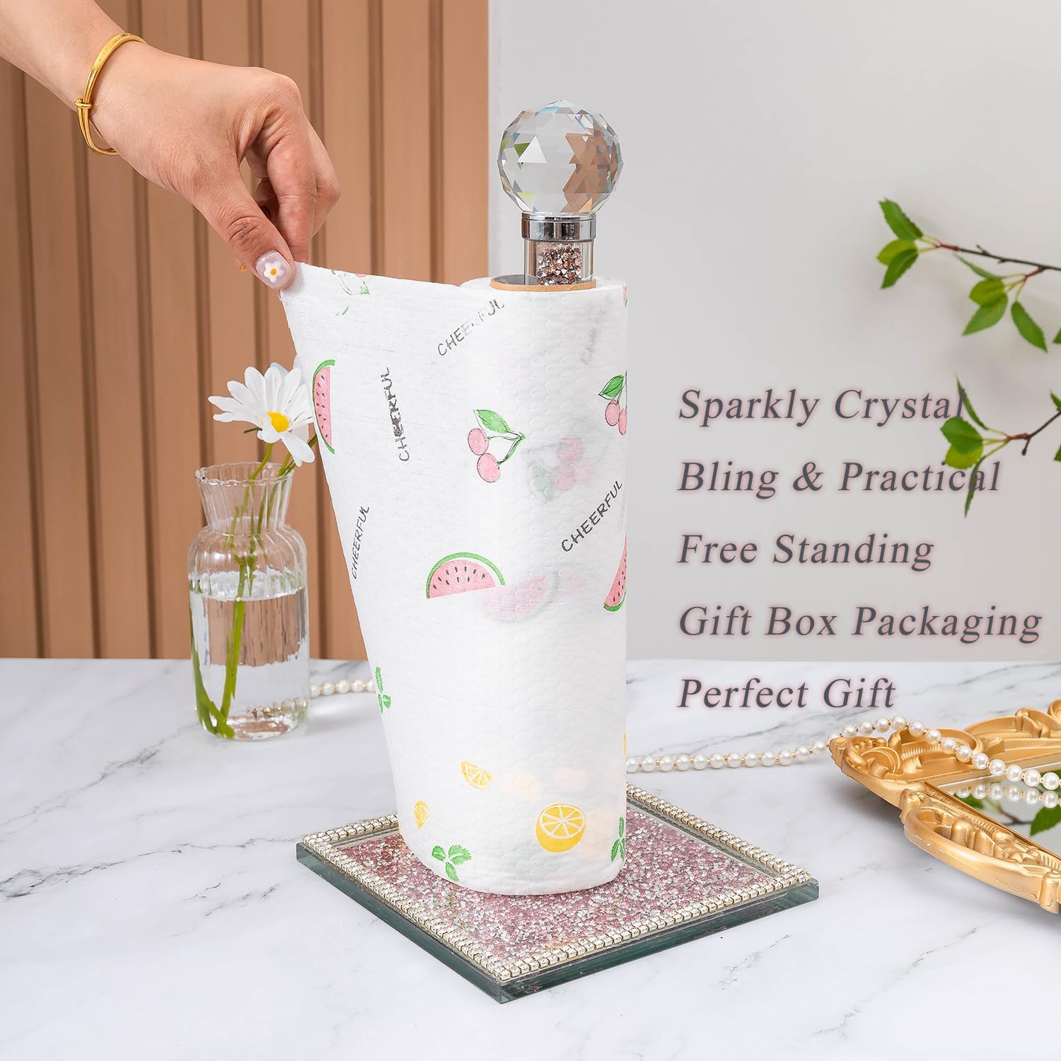 Features: Add some style to your kitchen with this Free-Standing Kitchen Paper Towel Holder filled with Crushed Diamonds.The crystal dome at the top is brimming with sparkling crystals and the base is a little wider than most, allowing the crystals to glisten in the light whilst holding your kitchen roll. We assure 100% best quality items to give you best shopping experience! Package: 1 pc set of detachable Paper Towel Holder