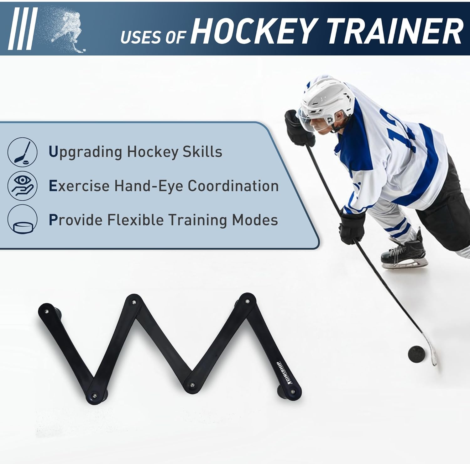• Structural Stability: The overall length of the snake hockey puck handling trainer is 66 inch and the height of the base is 2.4 inches. The non-slip pads on the bottom add to its stability, allowing hockey stick trainers to focus on technique and strength training
