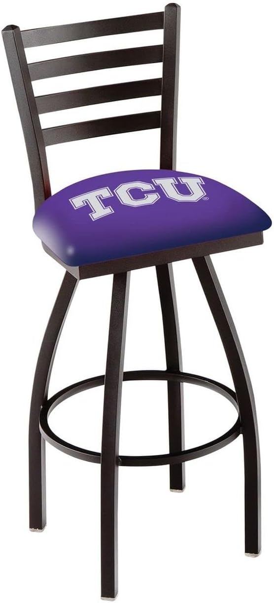 Made for the ultimate sports fan, you will be proud to show where your loyalty lies with this impressive Officially Licensed stool from the Holland Bar Stool Co. This L014 swivel logo stool has a defined Ladder Back style that doesn't just add comfort, but sophistication. A state of the art print process is used in applying specially formulated UV vinyl ink in numerous stages to produce a sharp, crisp, clear image to ensure a perfect reproduction of the logo. You won't find a higher quality logo stool on the market. The frame is made from commercial quality 16 gauge, 1 1/4 inch tube steel with solid Mig welded joints to strength and durability. The powder coated finish resists chips and scratches and ensures a long-lasting, rich appearance. The cushion seats are of the highest quality as well, utilizing a breathable, commercial grade vinyl. At the heart of the cushion is 2 1/2 inches of highly-dense, US made foam that provides maximum support and will not breakdown in a couple years. If you're going to finish your bar, game room, or man cave do it right- with a logo stool made in the USA by the Holland Bar Stool Co.