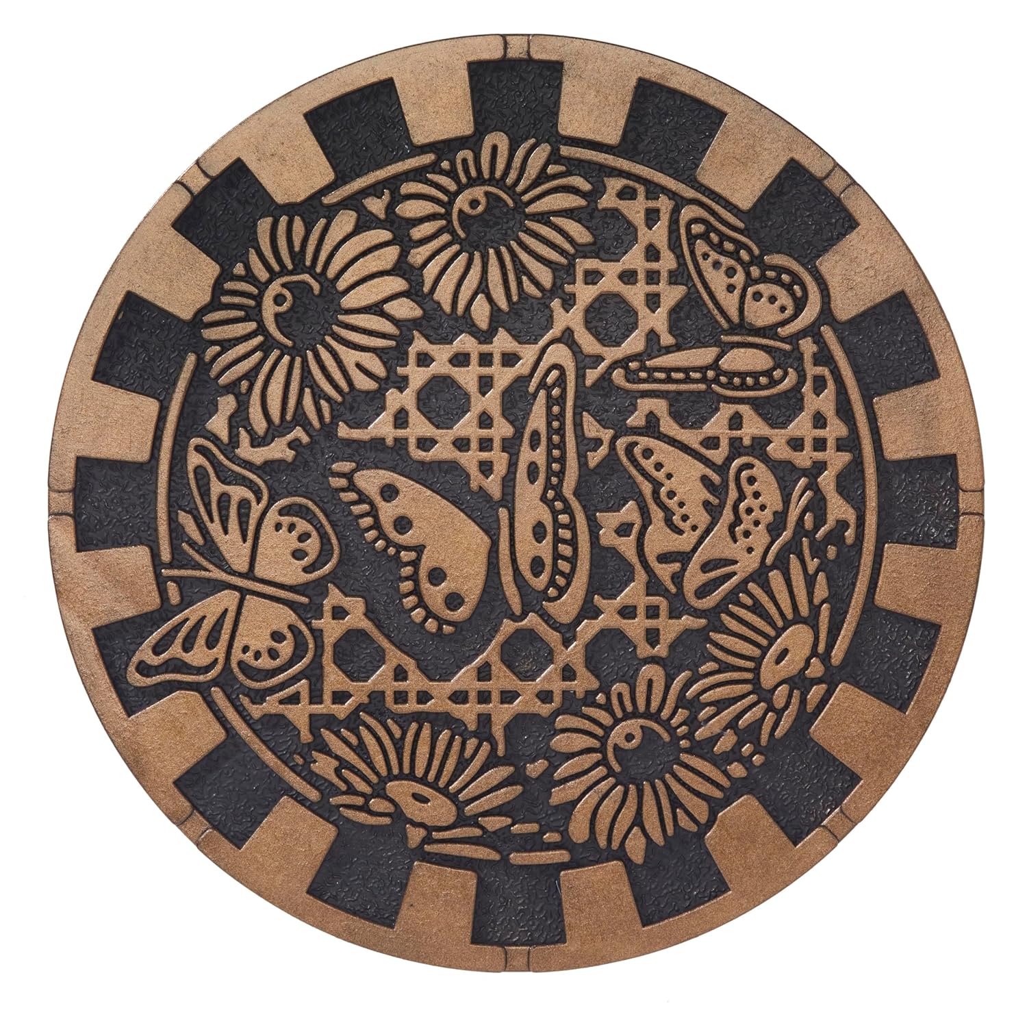 Add an enchanting accent to everyday walkways with Larry Traverso’s all-weather stepping stones! Larry Traverso’s Deluxe Garden Tiles are an artful line of low-profile stepping stones that wind a whimsical path through gardens and yards. Each ornate tile features a raised butterfly relief; a subtle brushed brass finish highlights the distinct details of each design. Larger and thicker than similar styles, these sturdy stones measure 13-inches in diameter and come in a set of three (3). Their heavy-duty, PVC-free, vulcanized rubber construction, composed of 50% recycled rubber and 50% natural rubber, define a stable, skid-resistant, and shock-absorbent surface. Larry Traverso’s Deluxe Garden Tiles effortlessly withstand extreme weather conditions, enduring the elements year after year. Home Furnishings by Larry Traverso specializes in distinct home decor that epitomizes superb individuality. Larry Traverso believes that home decorating should be easy, enjoyable, and affordable. Indulge in stress-free style with Larry Traverso.