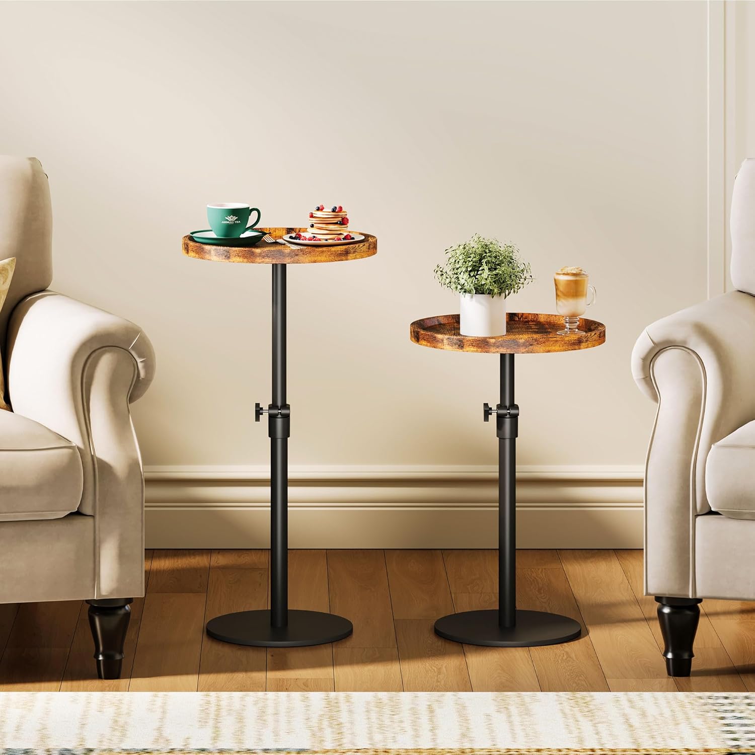 Homeiju Adjustable Round Side Table, Pedestal End Table for Small Spaces, Wooden Couch Table, Tall Drink Table for Living Room, Bedroom, Patio, Brown