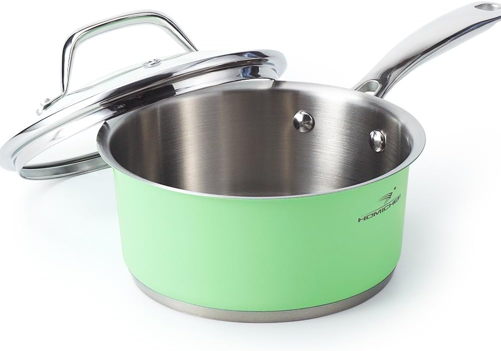 ECOLOGICAL BUILD: NICKEL FREE & COATING FREE1. Unlike most nickel-bearing 18/8 (Cr: Ni) and 18/10 stainless steel cookware products on the market, ours are healthier because they contain NO nickel, which harms health.2. Ours does NOT apply any coating which may release toxic fumes when cooking, disrupting immune system.DESIGNED FOR FAST & HEALTHY SMALL SERVINGS1. This 2.5 QT sauce pan has a 3-ply base, ensures even & fast heating.2. Petite in size, gives special attention to exquisite servings: cooking vegetables, melting butter, simmering sauces, soups or gravies.MORE VALUES1. 5MM thick 3-Ply construction in the base allows for fast and even heating.2. Heat surround technology for shorter cooking time, better nutrition, and more energy savings.3. See-through TEMPERED GLASS lid circulates heat and moisture, making the food more tasty and juicy.4. Solid riveted handle stays cool on the stovetop.FAQs1. Nickel helps become more corrosion-resistant, so nickel-bearing stainless steel is commonly used for industrial purposes, BUT nickel is high up on the ATSDR list of priority toxins. Our sauce pan is made of food grade NICKEL FREE stainless steel, which is NON-TOXIC, NON-ALLERGIC, thus more suitable for cookware.2. Even heat distribution achieves the natural stick resistance. Our sauce pan is satisfactorily stick resistant if used and cared properly.ATTENTION1. Please keep the sauce pan clean and dry after each use; DO NOT store foods seasoned with salt in it.2. Please remove foods from the refrigerator 10-15 minutes before cooking; pre-heat for 1-2 minutes, add oil before adding food; do not turn the food too soon to prevent sticking.3. Heat at medium temperature.
