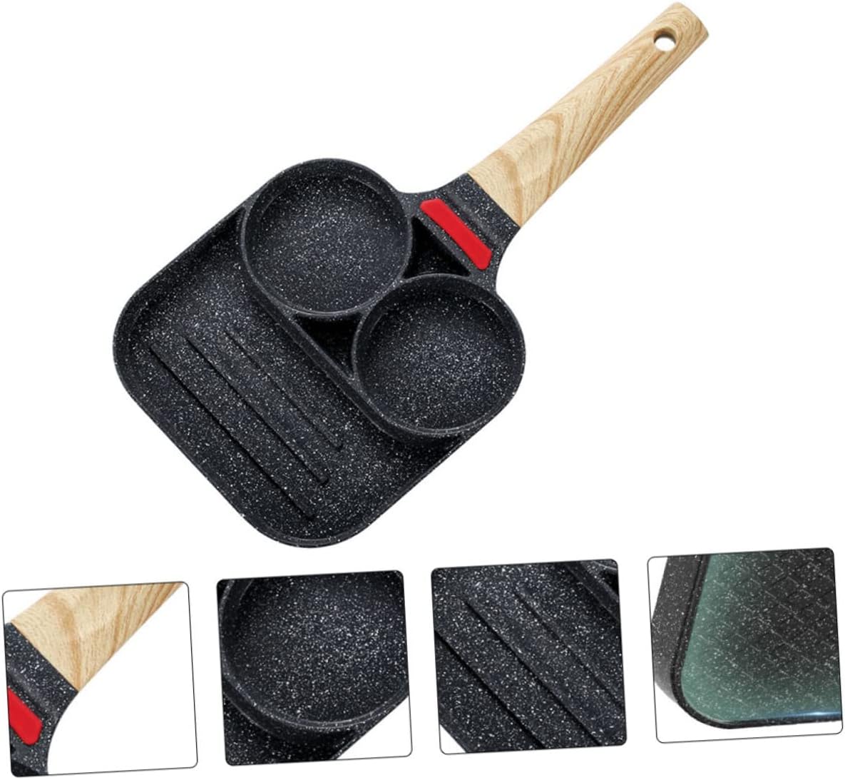 Package Include 1 x Egg Frying Pan Characteristics - Color: Black nonstick pan - Material: Aluminum, Wood 3 Section Fried Egg Pan - Size: About 34.00X18.50X2.50cm/13.36X7.27X0.98in Non-stick Omelette Pot - The surface is non-sticky, clean and . A great egg and pancake cooking tool Egg Cooking Pan. - It has the characteristics of hard texture, not easy to deform, heat transfer effect omelette pan nonstick. - Long handle, heat-resistant and non-slip to grip. 3-section design, fast soaking, energy saving Pancake Frying Pan. - Non stick coating, and healthy, easy to cook, stains are not easy to remain Pancake Pot. - Cooking is quicker and easier, requiring only a few simple steps Divided Frying Pan.Goods DescriptionPancake Frying Pan This lightweight and skillet can keep the flavors natural and tasty.Non-stick Omelette Pot It is for making fried eggs, sandwiches, pancakes and omelets, etc.omelette pan nonstick The frying pan is made of material, which enables even and efficient heat distribution