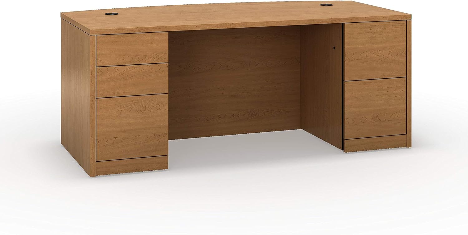 Build a hard-working workstation with 10500 Series laminate from HON, our bestselling desk collection. This 72"W double pedestal credenza can be used alone, or paired with a double pedestal desk and stack-on hutch to create an executive workstation. Laminate color is Mahogany.