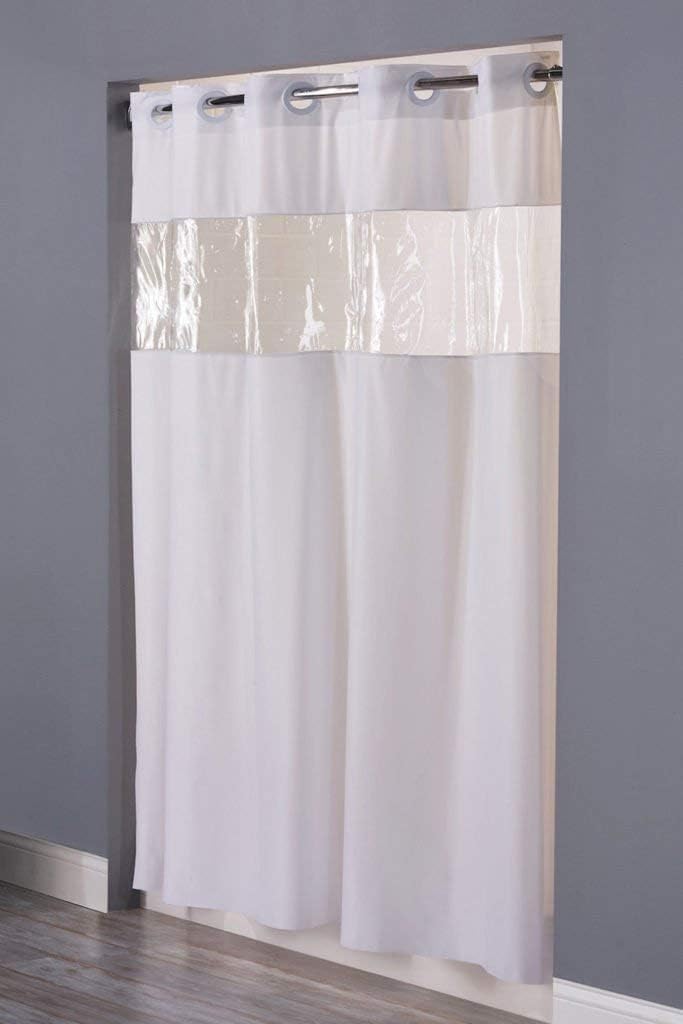Clear window lets light in and allows you to see out. Snap-in Liner NOT Included in Advertised Hookless Shower Curtain- Please see alternative style 'HOOKLESS ESCAPE' for additional Shower Curtain with included liner features.