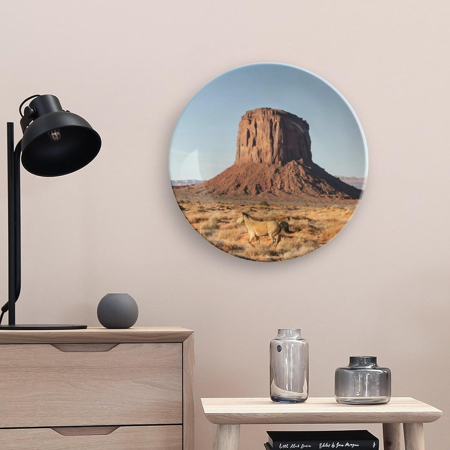 Horse Monoliths Valley Decorative Plates for Display Ceramic Plate Tray with Stand Hanger Home Decor