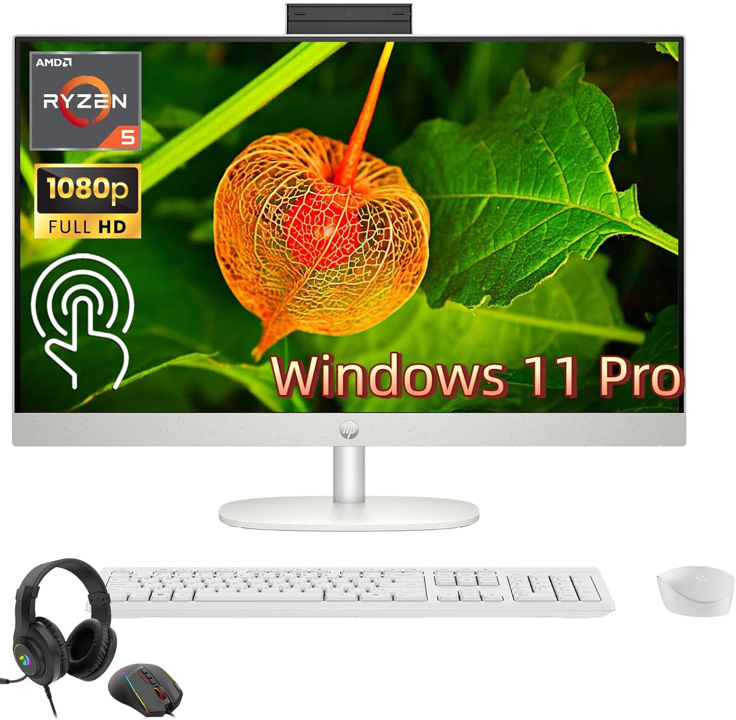 StatementOriginal Seal is opened for upgrade ONLY. If the computer has modifications, then the manufacturer box is opened for it to be tested and inspected and to install the upgrades to achieve the specifications as advertised.PRODUCT IDENTIFICATIONBrand: HP Model Number: 27-CR0307C Product Name: HP 27-inch All-in-One Desktop - AMD Ryzen 5 - 16GB RAM - 1TB SSD Operating System: Windows 11 Pro Color: White Form Factor: All-in-One Desktop Computer PROCESSOR & PERFORMANCECPU: AMD Ryzen 5 7520U (7th Gen) Cores / Threads: Quad-Core, 8 Threads Max Boost Speed: Up to 4.3 GHz Cache: 6 MB L3 Cache Graphics: Integrated AMD Radeon Graphics Performance Note: Built for efficient multitasking, delivering smooth performance for productivity apps, streaming, and everyday computing tasks. DISPLAYSize: 27 Inches Resolution: Full HD (1920 x 1080) Panel Type: IPS Touchscreen: Yes, 10-point multi-touch Brightness: 250 nits Features: Micro-Edge, Anti-Glare MEMORY & STORAGERAM: 16 GB LPDDR5-5500 MHz Storage: 2 TB PCIe NVMe M.2 SSD Configuration Benefit: High-bandwidth RAM ensures smooth multitasking across multiple applications, while the high-speed PCIe SSD provides quick boot-ups and rapid file access. DESIGN & CONNECTIVITYWireless: Wi-Fi 6 (802.11ax), Bluetooth 5.3 Audio: HP Audio with dual array digital microphones Camera: HP True Vision 1080p FHD IR tilt privacy camera with temporal noise reduction Keyboard & Mouse: HP White Wireless Keyboard and Mouse Combo (included) Ports: - 1 x USB Type-C (5Gbps signaling rate) - 2 x USB Type-A (5Gbps signaling rate) - 2 x USB 2.0 Type-A - 1 x HDMI 1.4b (Out) - 1 x RJ-45 Ethernet Port - 1 x Headphone/Microphone Combo Jack Note: No Optical Drive PHYSICAL SPECIFICATIONSDimensions (W x D x H): 24.11" x 7.33" x 17.36" Weight: Approximately 20 lbs (all-in-one unit) WARRANTY & INCLUSIONSWarranty: 1 Year Manufacturer's Warranty (Parts & Labor) Included in Box: HP All-in-One Desktop, HP White Wireless Keyboard, HP White Wireless Mouse, Accessories