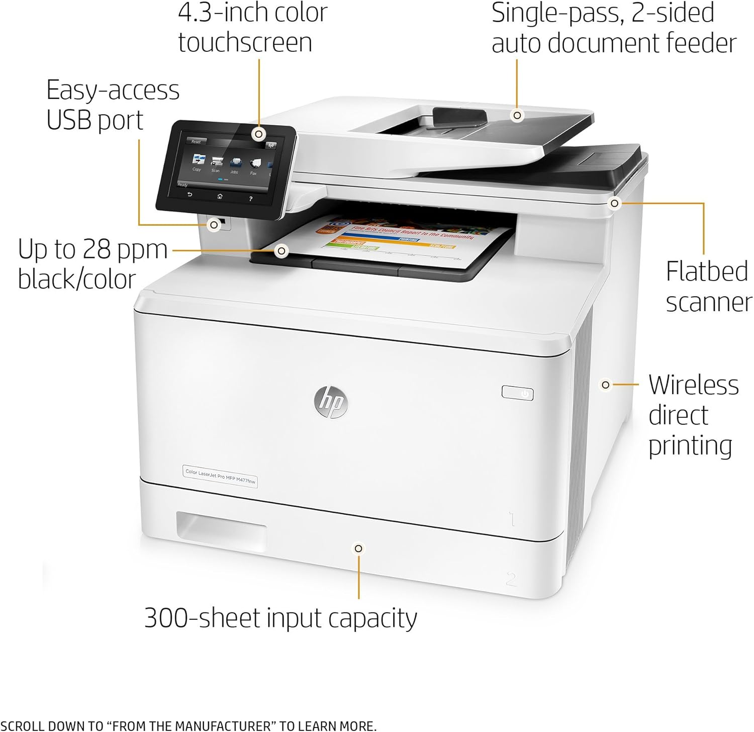HP Laserjet Pro M477fnw Multifunction Wireless Color Laser Printer with Built-in Ethernet (CF377A) (Renewed) - Includes all accessories that come with a new equivalent.