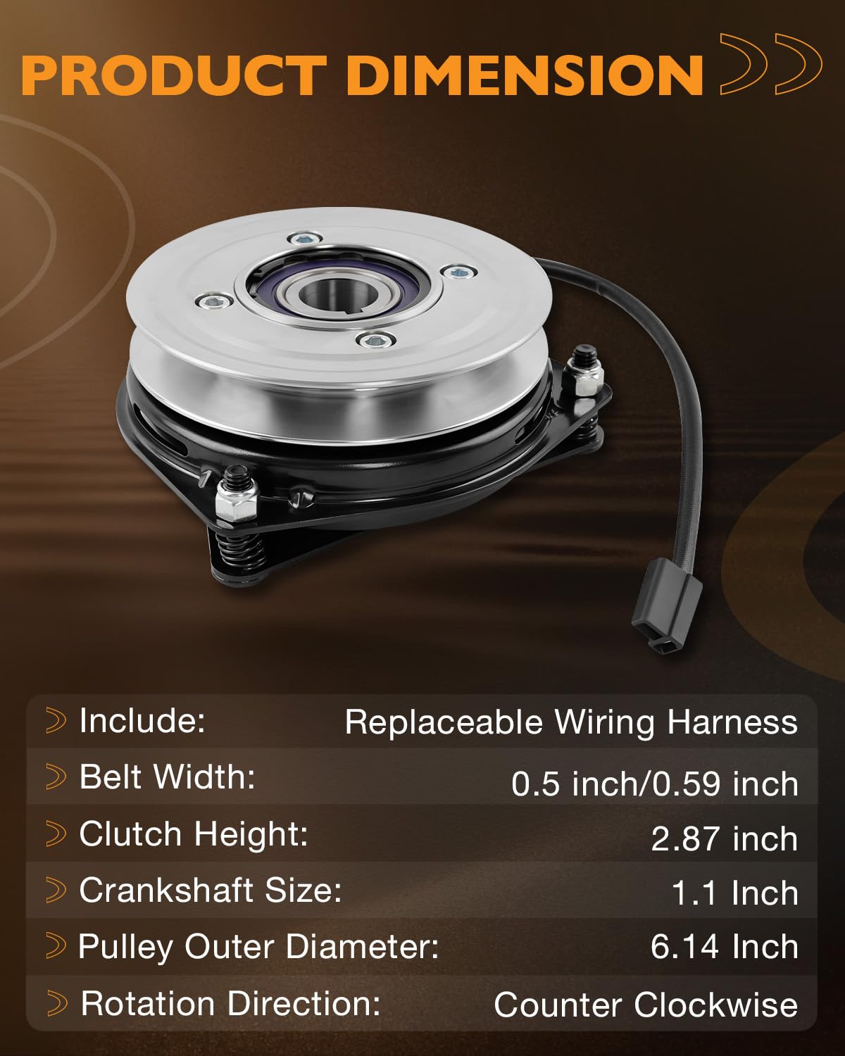 Product Name: 02004878P Billet Pulley PTO ClutchReplace Part Number:02004878P, 02004878Compatible with:M48-KH, M48-KWM54-KH, M54-KWM60-KH, M60-KWTank L48-KH, Tank L60-KH,53AH8CT2050, 53AI8CT2050, 53BH8CT405053AH8CT4050, 53AI8CT4050, 53BI8CT605053AH8CT6050, 53AI8CT6050, 53CH8CT605053AH8CTB050, 53AH8CTD050Note:before purchasing to ensure a correct fit.Key Features:Premium C3 Bearings: Designed with high-temperature resistance in mind. These C3 clearance bearings are lubricated with quality high-temperature grease and often feature a larger, more robust construction for enhanced durability and improved clutch performance under demanding conditions.Durable Steel Billet Pulley: Constructed from a hard alloy, this pulley is built to minimize belt wear and help maintain consistent blade speed. The innovative design incorporates a retaining ring, facilitating easier bearing replacement and future maintenance.High-Torque Coil & Robust Design: With a torque capacity upgraded to 150 ft.lbs, this clutch is built to handle tough cutting conditions. The enhanced strength helps prevent slippage and the potential overheating associated with it, supporting reliable operation in various challenging environments.Specifications:Crankshaft Size: 1.1 InchPulley Outer Diameter: 6.1 InchRotation: Counter ClockwiseBelt Type: A/BMaximum Torque: 150 ft.lbsNote:We strongly recommend confirming your mower's model number and compatibility with this product before ordering. If you are unsure or have any questions, our customer service team is ready to assist you.