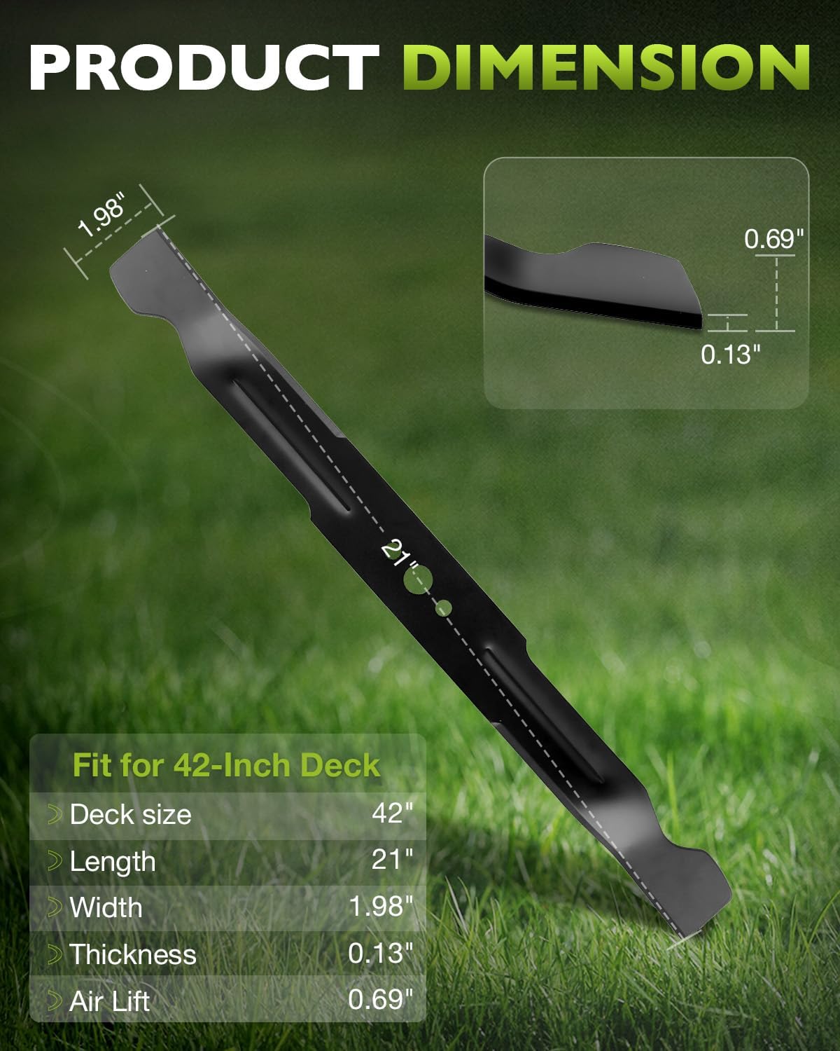 Product Dimension:Deck size: 42"Length: 21"Width: 1.98"Thickness: 0.13"Air Lift: 0.69"Center Hole Diameter: 0.67"Outer Hole Diameter: 0.35"Outer Hole Center to Center: 1.8"Replace Part Number:AB4200DCompatible with EGO Power+:42-Inch Z6 Zero Turn Riding Mower ZT4200L ZT4204L