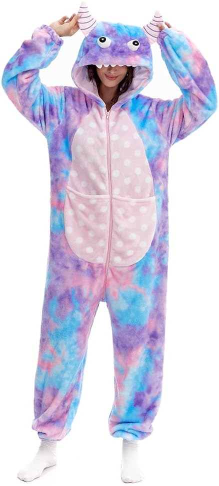 Hsctek Fuzzy Teddy Fleece Adult Onesies Pajamas with Hoodie - Teen Long Sleeve Zip Up Hooded Blanket Sleep - One Piece Costume