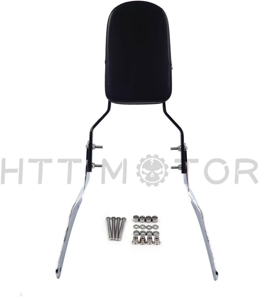 Attributes: High Chrome Quality Backrest / Sissy Bar with Pad! Kit includes pad, mounting brackets, hardware and bolts Features Chrome plate at the back of backrest Specification: Color : the same like pictures show Instructions: Easy install , no installation guide Overall Height: Approx. 18.5" Bolt to bolt center distance is about 8.5" Condition: Brand New, Never Used Bar Material: Steel Pad Material: Synthetic leather Fitment: 2005-2012 Suzuki Boulevard M50 2005-2012 Suzuki Boulevard C50 2001-2004 Suzuki Intruder Volusia 800 / VL800