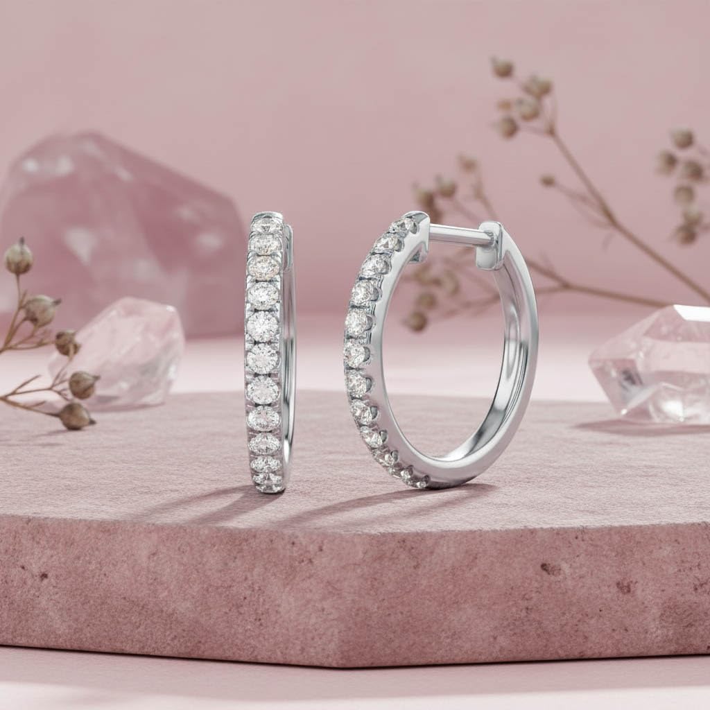 Enhance your jewelry collection with these elegant Huggie Hoop Earrings for Women, designed to bring a refined sparkle to everyday style. These classic hoops feature round natural or lab grown diamonds totaling 0.30 carat weight (cttw), Crafted in 14K Solid Rose Gold, these diamond hoop earrings provide a bright, polished finish and a timeless appearance. The huggie hoop design sits comfortably close to the earlobe, giving these earrings a modern and minimal profile that is easy to wear throughout the day. The earrings are designed with a secure hinged closure, allowing for easy wear while helping keep the hoops comfortably in place. These diamond huggie hoop earrings are a versatile addition to any jewelry collection. They can be worn alone for a simple and sophisticated look or paired with other earrings for a layered style. Their timeless design also makes them a thoughtful jewelry gift for occasions such as birthdays, anniversaries, holidays, or special celebrations.