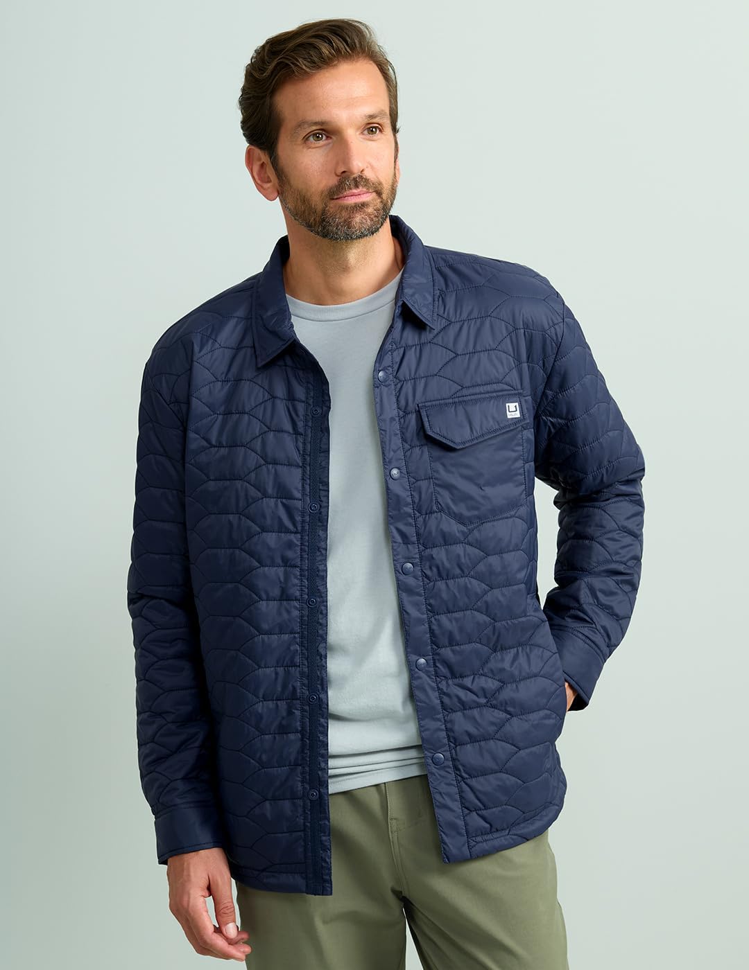 HUK Mens Scale Shacket, DWR Insulated Performance Fishing Shirt Jacket