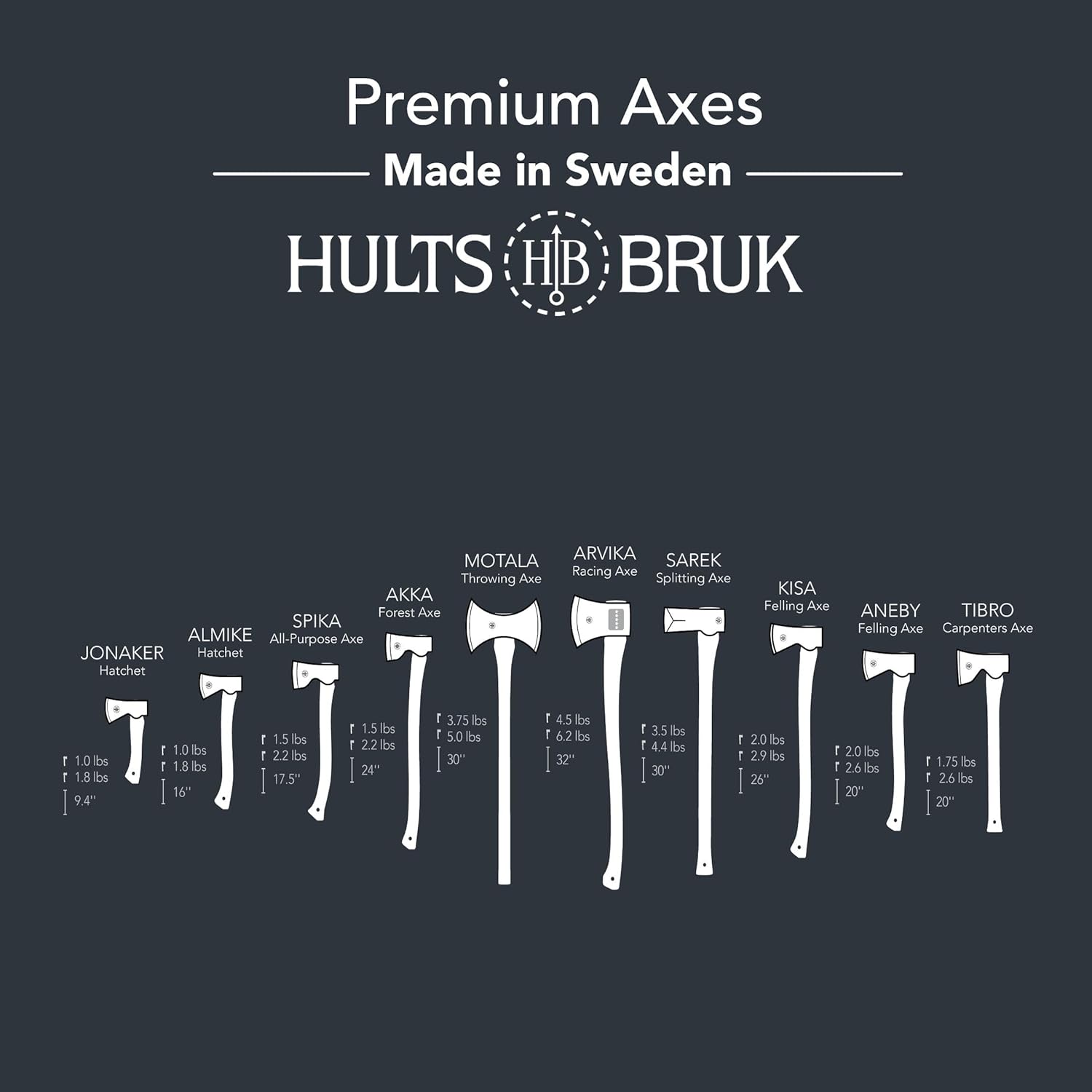 Hults Bruk’s traditional Carpenter’s pattern has a thin, long, and straight edge that makes even cuts for rough shaping and detailed carving. The straight 20-inch American hickory handle provides balanced, accurate swings on larger projects. The finger notch near the neck allows the user to choke up on the handle for fine carving work. The squared-off pole is can be used to hammer wood or plastic wedges into place. Never hit metal objects with any Hults Bruk axe. The cutting edge is approximately 4-inches in length. Note: all Hults Bruk axes are hand forged, so there may be slight variations from axe to axe.