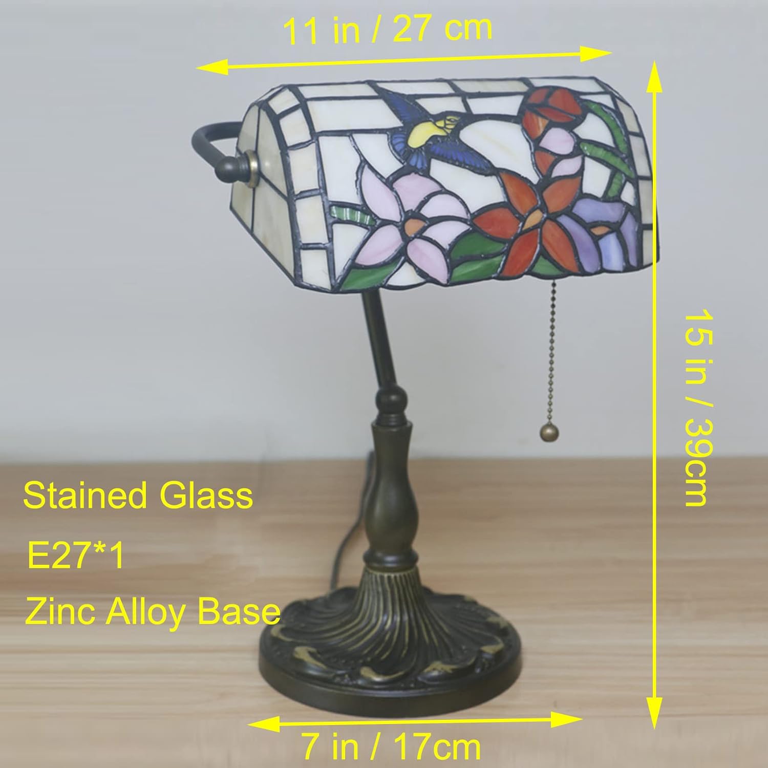 ♥ Handmade, hand-made lamp body, colored glass is welded by tin wire,The light source adopts E27 lamp holder, which is flame-retardant and heat-insulating, safe and energy-saving, easy to replace and longer in service life.♥ Elegant metal Vintage Banker lamp, Humming, bird Stained Glass lampshade in antique style. Bring a piece of nostalgia into your home with a lamp that you usually only know from old banks, law offices and courtrooms.♥ As a birthday gift, Thanksgiving gift, Christmas gift, Humming, birds lamps can be give to your parents, husband, wife, son, daughter, child, lover, girlfriend, boyfriend, teacher, friend, girl, colleague, woman♥ Easy assembly: tiffany light fixture is easy to install, no need any tools to complete. ♥ Style: Tiffany style / Pastoral / Mediterranean / Modern / Country♥ Colors: Beige red green blue orange yellow pink purple gold cream glass lamp♥ Shade Style: Rose Dragonfly Humming, Bird Green Crystal Beads Style Stained Glass Lampshade ♥ Switch type: Push button switchLight source: E27X1 (without light bulb).Voltage: 110V~240V (inclusive)♥ Package size:34*28*23 cmWeight: 2 KG♥ Packaging: Embedded styrofoam safety packaging. Strong impact resistance, anti-pressure, shockproof, moisture-proof and safe.