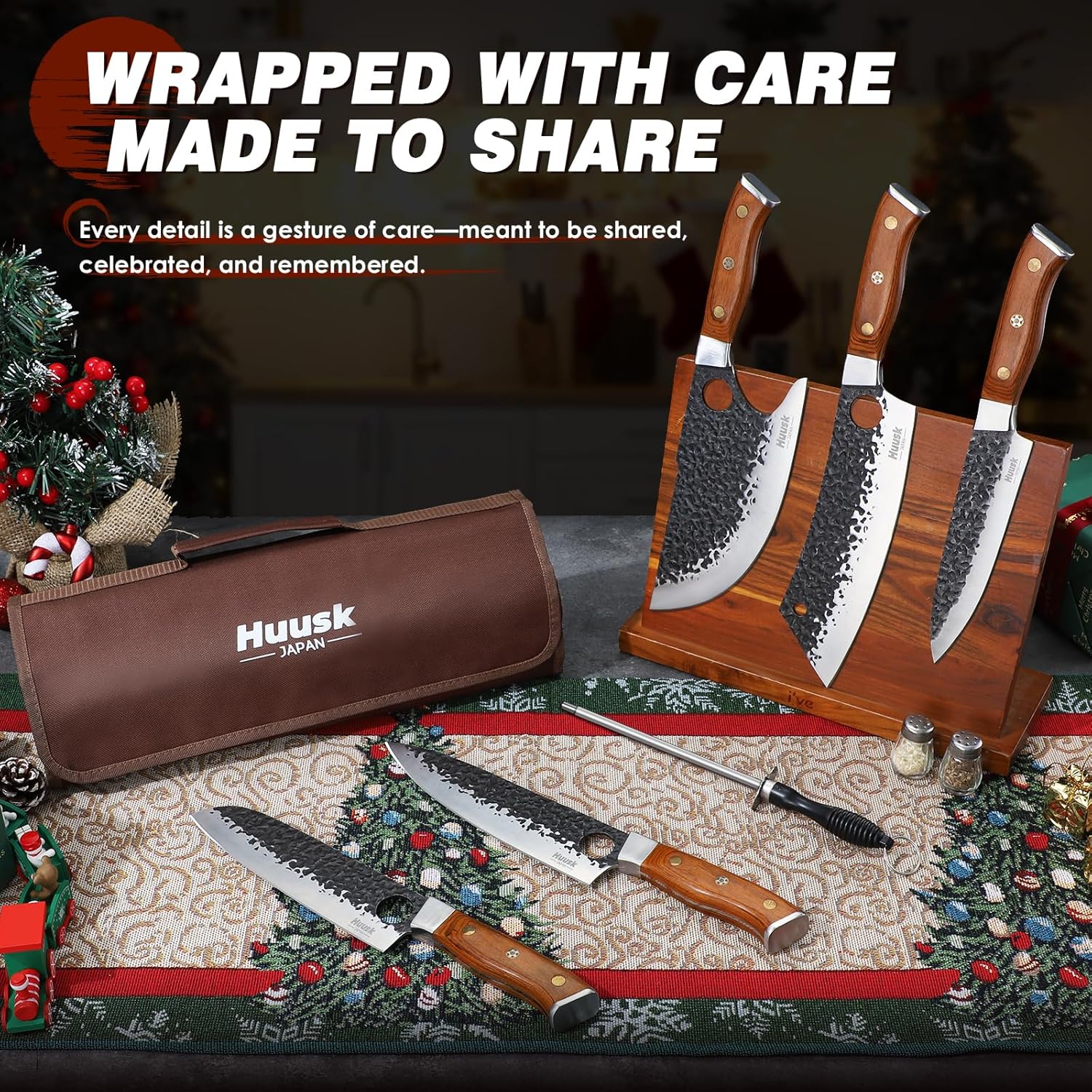 | Included Components | 1 x Durable Roll Bag, 1 x Professional Gloves, 1 x Sharpening Rod, 5 x Hand Forged Butcher Knife |