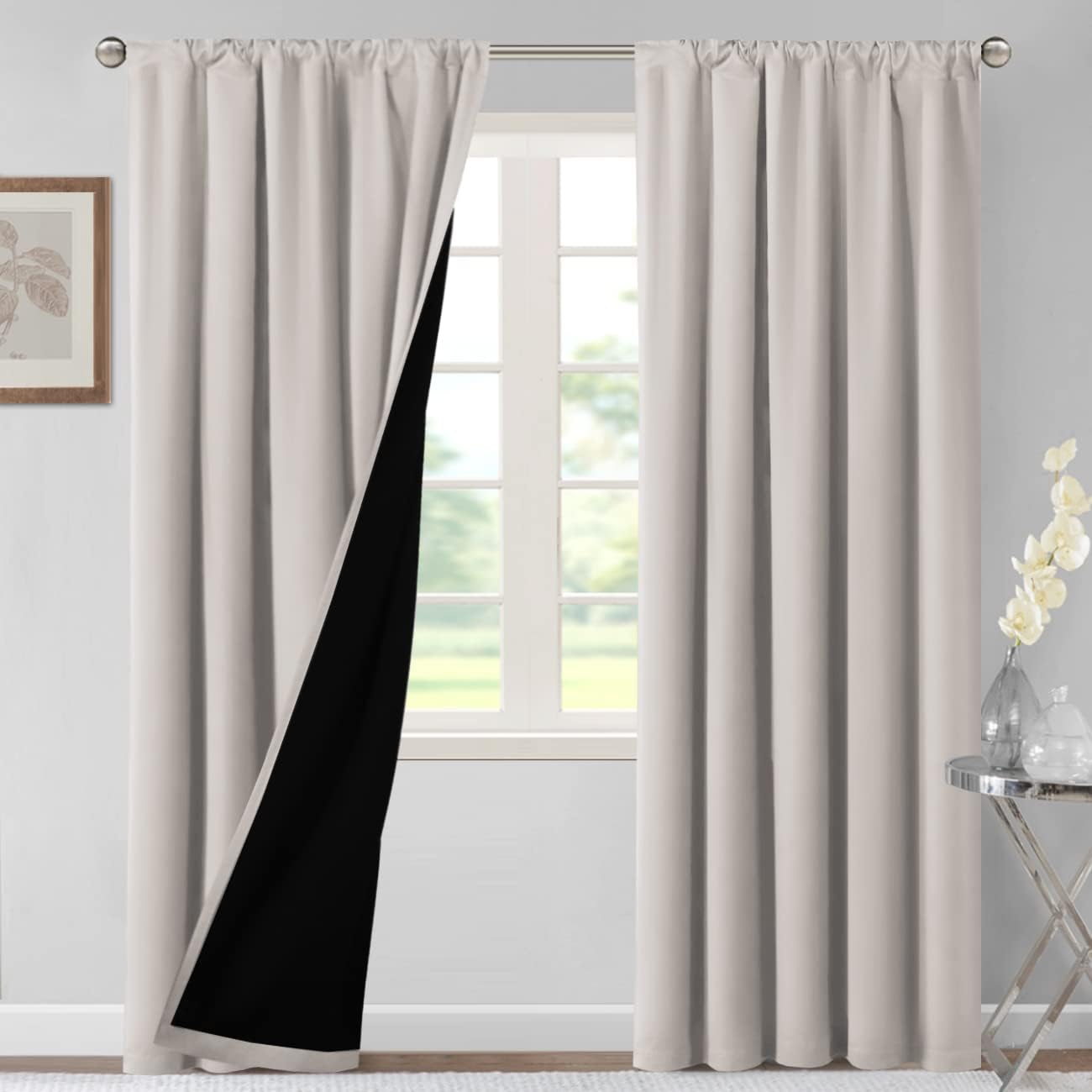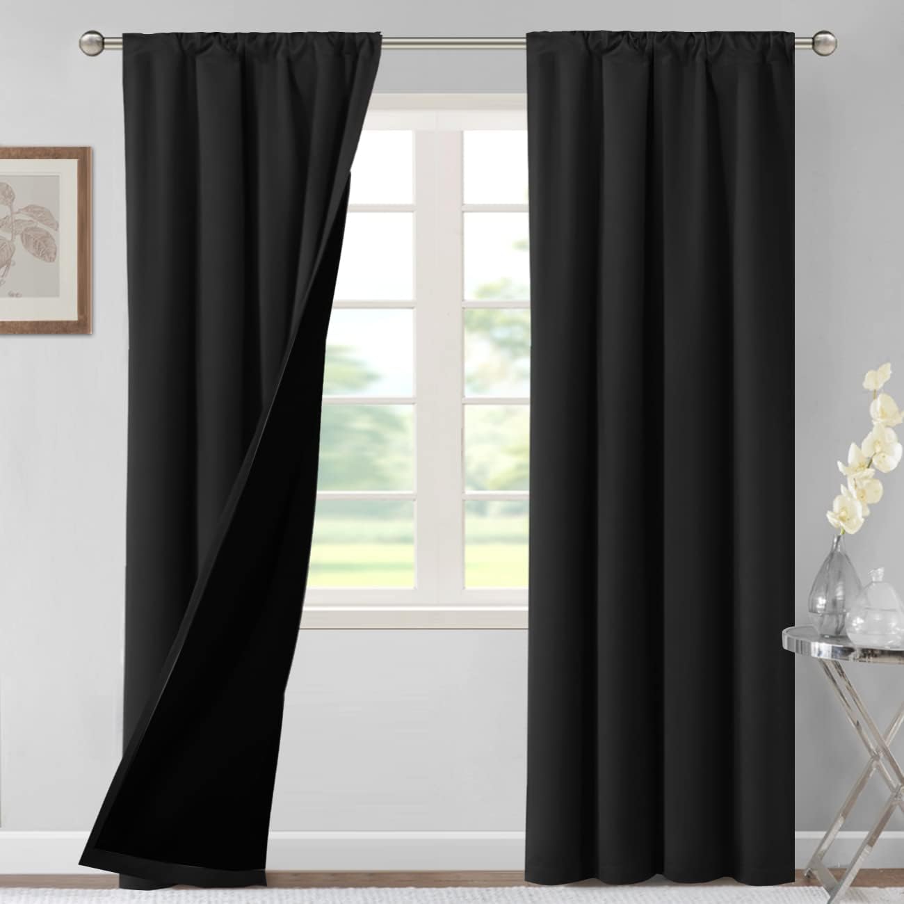 • 100% BLACKOUT: These magic solid curtain panels have black lining on backing, definitely can block out 100% bright sunlight and UV ray, turn day into night, enjoy your sweet sleeping and protect your furniture from color fading, providing privacy in your place