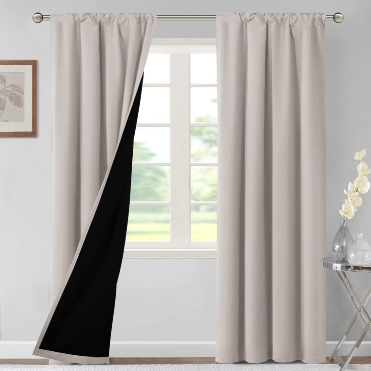 H.VERSAILTEX 100% Blackout Curtains for Bedroom Thermal Insulated Curtains & Drapes Blackout Curtains 84 Inches Long Rod Pocket Curtains for Living Room with Black Liner 2 Panels Set, Natural Sand