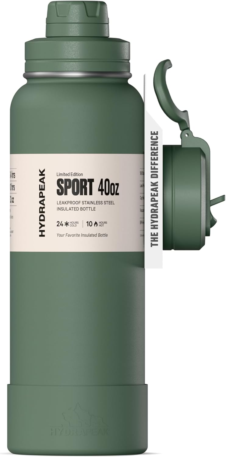 Experience the convenience and superior performance of the Hydrapeak insulated water bottle 32 oz! This premium stainless steel water bottle is the perfect companion for gym workouts, hiking adventures, school days, or simply for everyday hydration needs. It features double-wall insulation that keeps your drinks cold for up to 24 hours and hot for up to 12 hours, ensuring your beverages always stay at the perfect temperature. The Hydrapeak water bottle comes with two lid options - a straw lid for easy sipping and a chug lid for quick hydration. Each lid is color-matched to the protective rubber boot that not only enhances the bottle's aesthetics but also provides added durability. The water bottle is leak-proof and spill-proof, making it safe to carry around in your backpack or gym bag. The bottle lid also features an integrated carry handle for easy transport. Choose from three different sizes - 26oz, 32oz, and 40oz to suit your hydration needs. The 26oz size is cupholder friendly, making it perfect for commutes or road trips. The Hydrapeak insulated water bottle is not just a water bottle; it's a reliable hydration partner that offers outstanding performance and stylish design. Stay refreshed and hydrated with the best water bottle on the market - the Hydrapeak insulated water bottle!