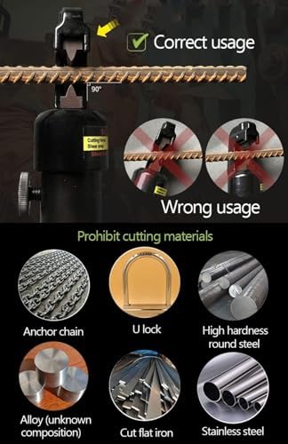 • [Sharp Blade]: Our Hydraulic Bolt Cutter features a Durable CH 12 Steel Blade, designed for efficient cutting of steel bars. Ensure bars are positioned perpendicular to the blade's center for optimal performance. For safety, avoid standing on either side of the blade during use. Ideal for various applications, this tool combines strength and precision for reliable results.