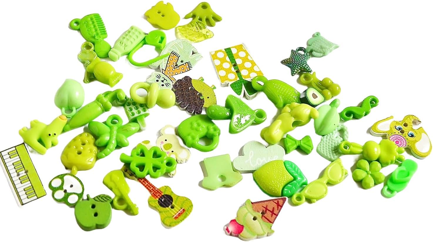 I spy trinkets by Color. Trinkets are mix of charms, beads, buttons, cabochons and more miniatures. This is a colorful selection of single and double-sided trinkets in various shapes of animals, bugs, transportation, clothes, nature, food, games and many more. QUANTITY 50 trinkets. Only different trinkets in set. MATERIAL Plastic, resin, clay, wood, alloy metal SIZE most trinkets are 1-3 cm (3/8-1 inch)