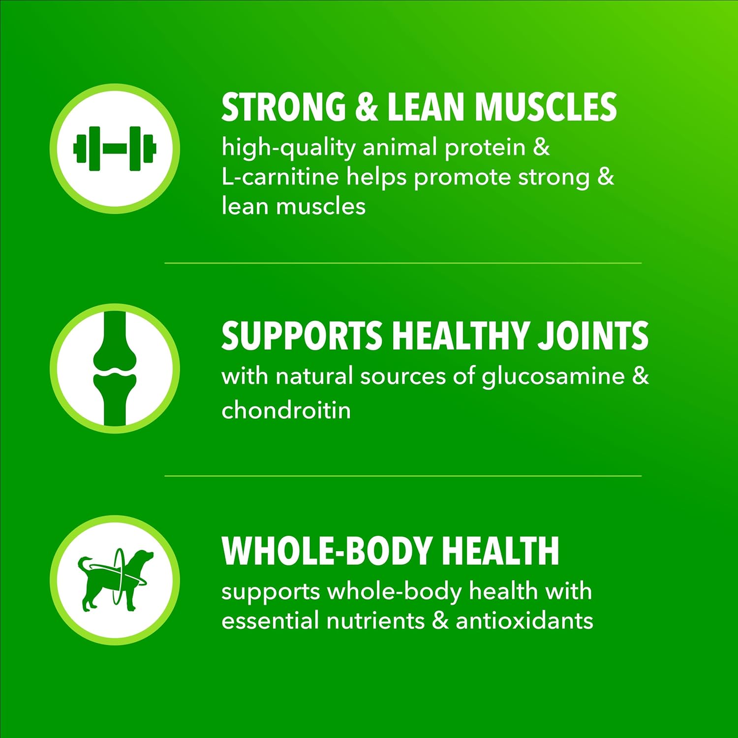 Veterinarians recommend IAMS Dog Food. When it comes to nourishing your adult dog, IAMS Proactive Health High Protein With Chicken & Beef Dry Dog Food is a great choice. With real chicken as the #1 ingredient, you can feel confident that you are feeding a high-quality meal your dog will love. This high protein dog food is designed to support your dog's health with 80% of protein from animal sources, approximated and derived from unprocessed state of ingredients, so that your dog gets the essential nutrients they need. IAMS Dry Dog Food High Protein is 100% complete and balanced for adult dogs and made with no fillers or artificial flavors; ingredients are natural as defined by the Association of American Feed Control Officials (AAFCO). Wholesome grains provide essential nutrients and carbohydrates for healthy energy, while natural sources of glucosamine and chondroitin support healthy joints. Choose IAMS High Protein Dry Dog Food as a healthy dog food option so you can be confident that your dog will always be at their best today and everyday.
