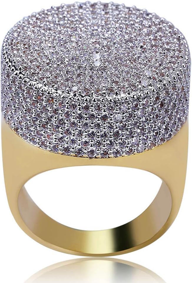 This completely iced out Ring is made from jeweler's brass plated with premium 18k gold plating. Each stone is carefully set by hand by a professional jeweler, creating a totally iced out look! Order today and treat yourself (or someone special) to this brilliant new gift, This Ring will be sure to catch people's eyes. Be impressed by the superior quality of designs, experiencing luxury for less. A similar Ring made from real Diamond stones can cost you thousands. You can get a similar look and feel with this Ring without breaking your wallet! These aren't cheap pieces! This is quality jewelry!
