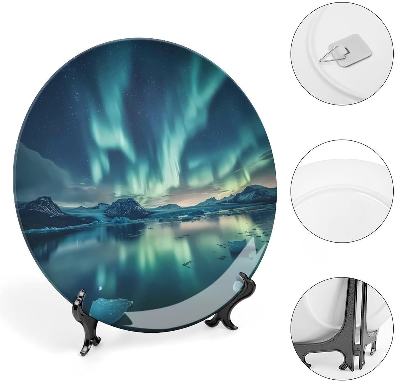 Iceland Northern Lights Bone China Decorative Plate with Stand Home Dessert Plates Gift for Men Women 6inch
