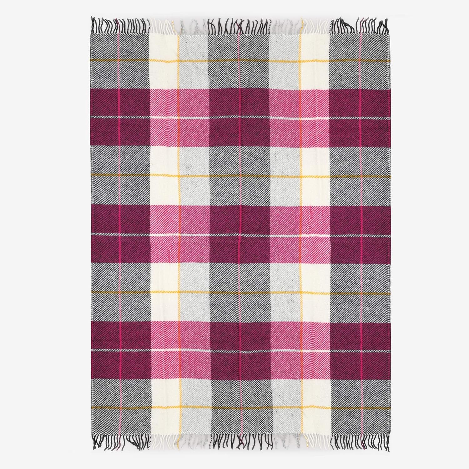 ICEWEAR Ylur 100% Wool Plaid Knit Design Outdoor Throw Blanket Pink and White
