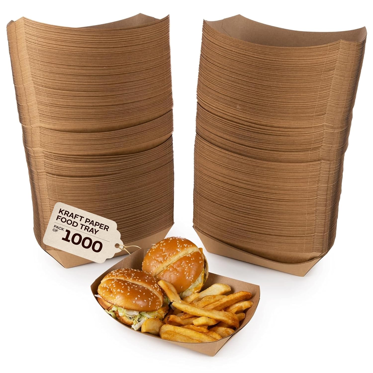 IDL Packaging offers Paper Lunch Trays measuring 10.25 x 7.5 x 2 inches, a pack of 125 trays. Bulk orders are available. Provide ample amounts of space and strength for all kinds of meals! Each container is crafted with strong paperboard material composed from chemical pulps. Features poly coating for extra protection against moisture and grease residue - ideal when dealing with hot dishes or meals requiring added condiments. And best yet, they're both recyclable AND proudly made in America – so you can rest assured of a proper quality!The perfect addition to your food service business! Show your customers that you care about the environment with our paper containers. These eco-conscious options are not only safe for human health and nature but also offer a cost-effective bulk solution perfect for any gathering or food service business such as farmers’ markets, concession stands, fast food restaurants, and more.With these sophisticated and rustic cardboard serving trays made of natural brown kraft paper, your savory snacks will be showcased in an elegant style. Featuring a food-safe poly coating to prevent wet or gravy-laden foods from soaking through, they are ideal for nachos, tacos, hot dogs, and even crawfish!Our disposable food containers offer a hassle-free solution for all your hosting needs - from casual family gatherings to large events. Microwave and freezer-safe design make mealtime preparation easy as can be!Our paper food boats offer the perfect solution for today's commercial food industry. Come in convenient clear bags - an excellent choice for hygienic and mess-free storage and transportation. Can be easily reused or composted after use, allowing a hassle-free disposal experience!