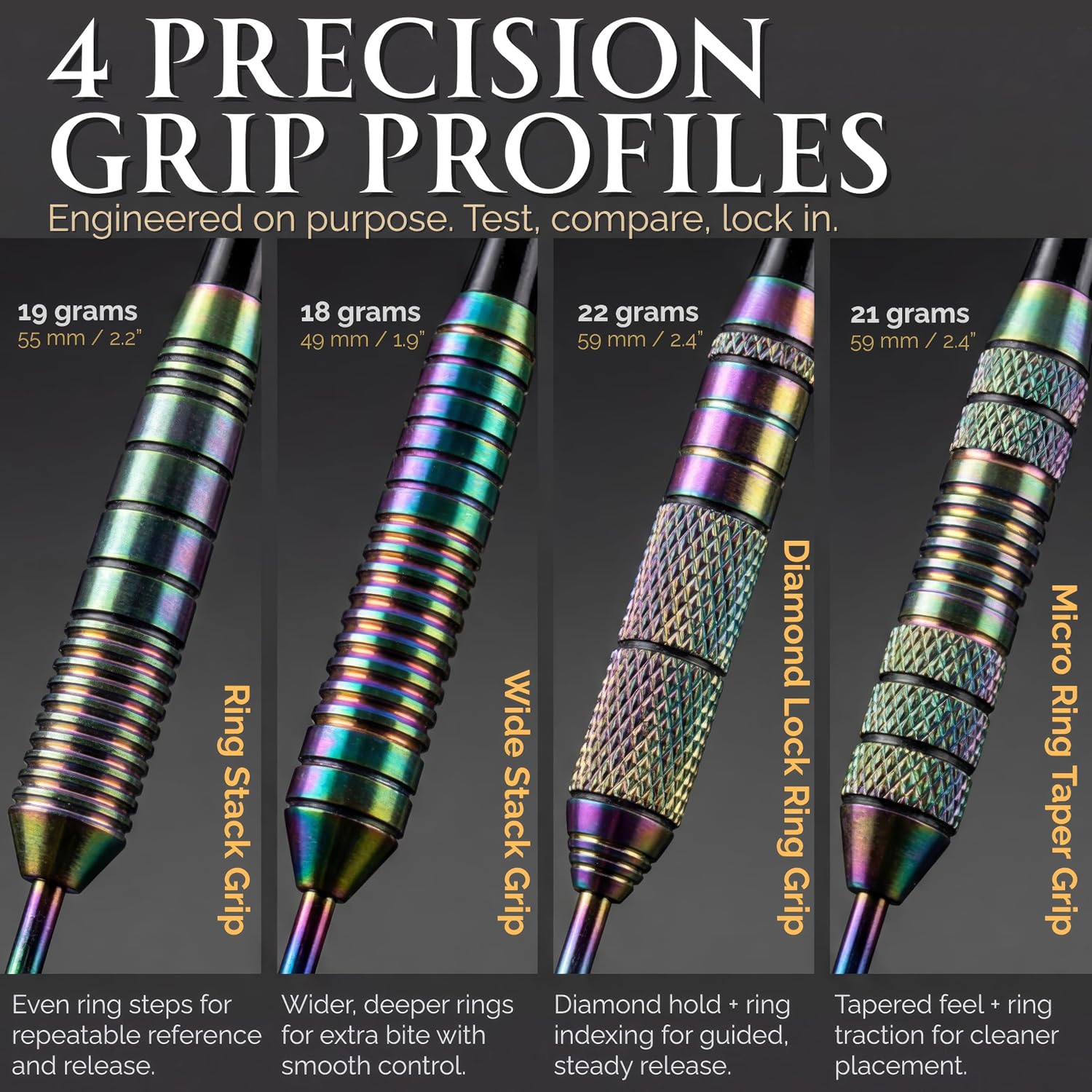 | Included Components | 12 Metal Barrels 18-22 grams, 6 TwinForce aluminum shafts with rubber O'rings, 32 GlideXPro Flights (16 Standard Flights + 16 Slim Flights), 1 Darts Sharpener, 1 Darts Wrench, 1 eBook |