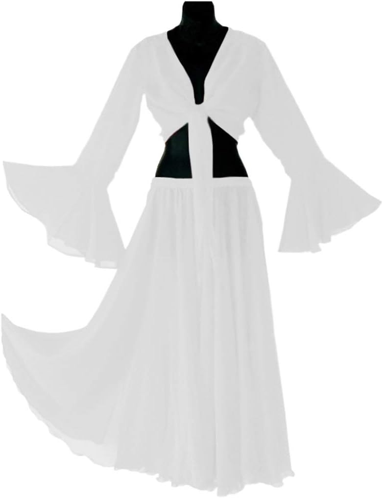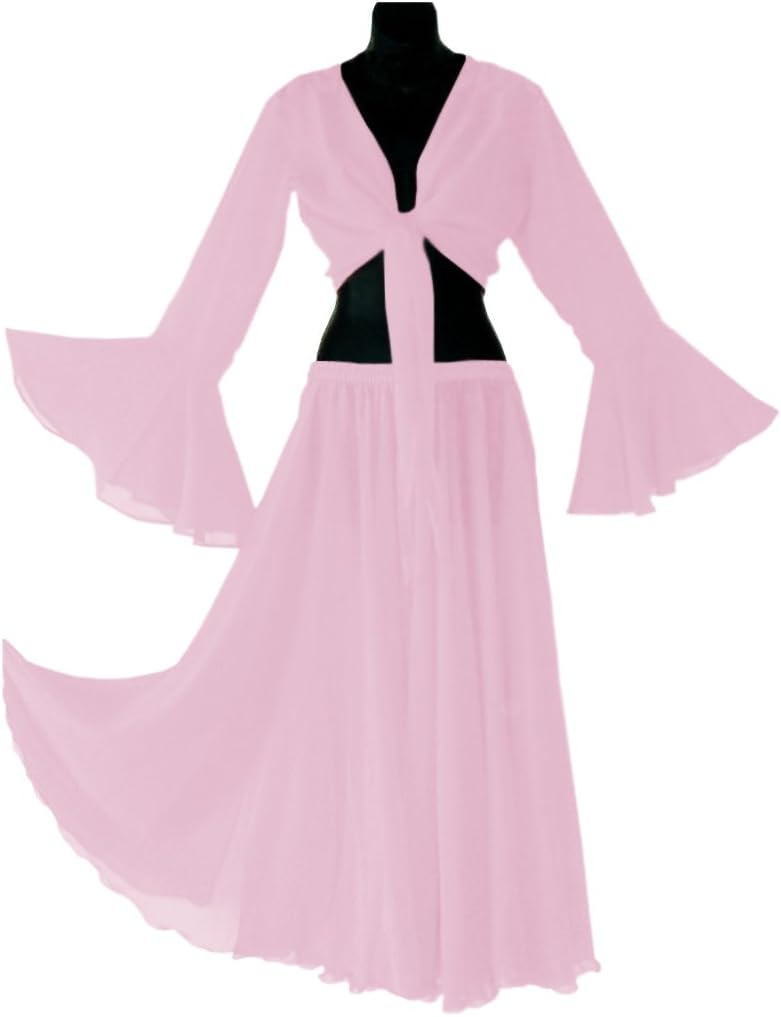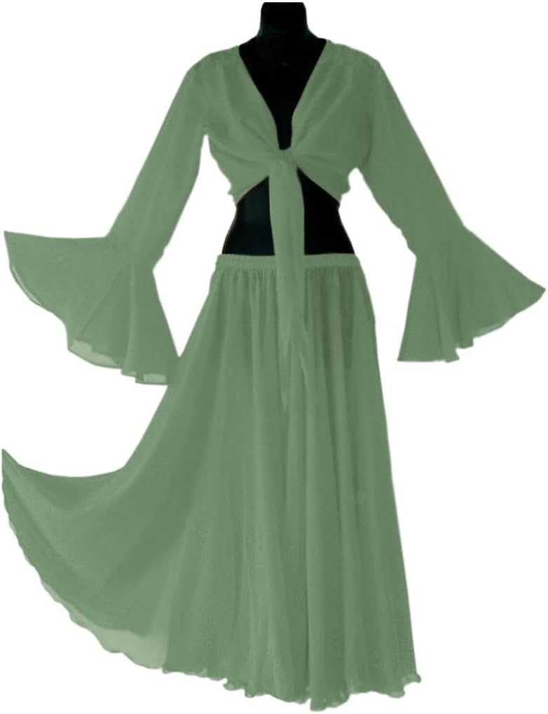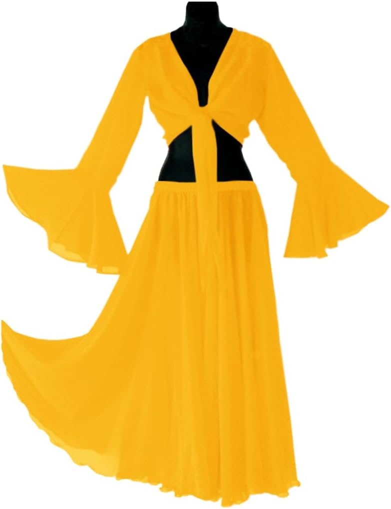 Welcome to IndianTrendy!Specification: Color: Select Color Fabric: Chiffon ( See Through - need lining for the same ) Style: Full Circle Skirt + Ruffle Bell Sleeve Top Set Size: One Size, S, M, L, XL, XXL, 3XLLength: 36 inches (91 CM) Size Chart: One Size: Waist about 25-40 inches (66-100 CM) ; Bust about 30-40 Inches (76-100 CM) Small: Waist about 23-26 Inches (58-66 CM) ; Bust about 24-30 Inches (61-76 CM) Medium: Waist about 27-30 Inches (68-76 CM) ; Bust about 30-35 Inches (76-89 CM) Large: Waist about 31-35 Inches (78-90 CM) ; Bust about 35-40 Inches (89-100 CM) X-Large: Waist about 36-39 Inches (92-99 CM) ; Bust about 40-45 Inches (100-114 CM) XX-Large: Waist about 40-43 Inches (101-110 CM) ; Bust about 45-50 Inches (114-127 CM) 3X-Large: Waist about 44-47 Inches (112-120 CM) ; Bust about 50-55 Inches (127-140 CM)Color Note: Different lighting effects contrast settings may cause a slightly different between photos and actual item, understanding & according to real product. Wash Instruction: Machine Wash.