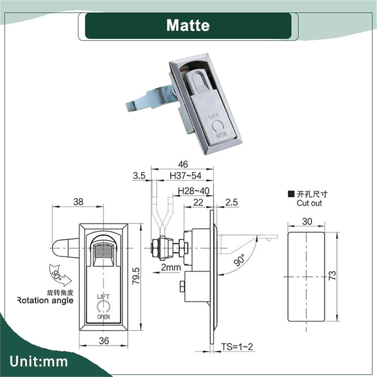LatchIndustrial Equipment Distribution Box Power Switch Cabinet Press And Rotate Flat Lock 1Pcs