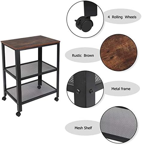 Specifications:1. Color: Rustic Brown2. Material: Particleboard, Iron3. Size: (23.62 x 15.75 x 30.90)" / ()cm (L x W x H)4. The Overall Load Capacity Can Reach Up to 176 lbPackage Includes:1 x Utility Cart