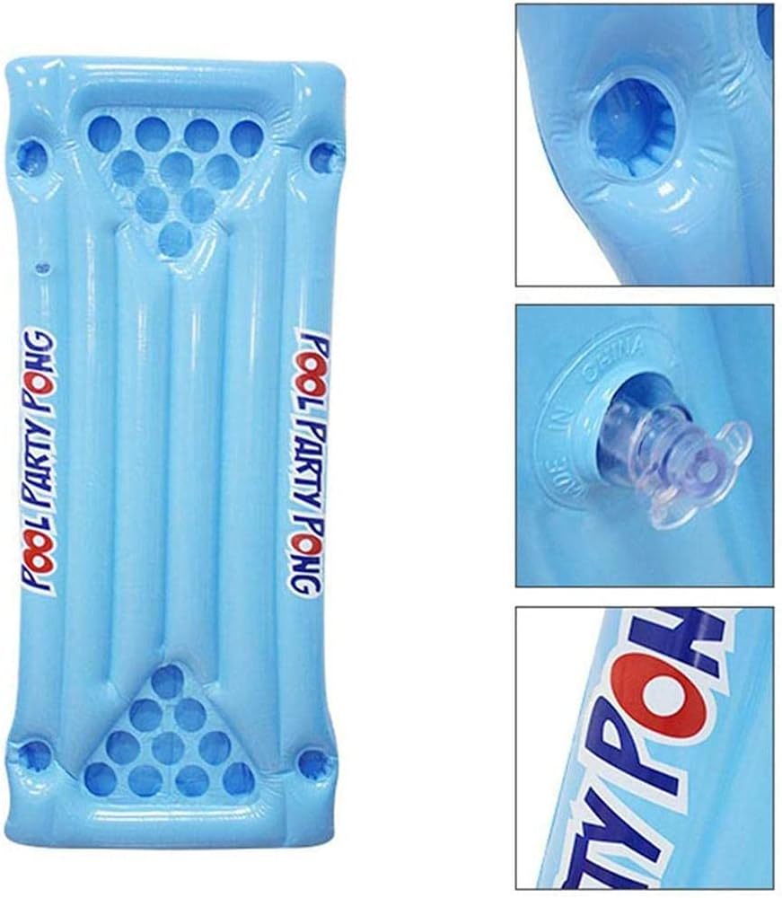 PVC Inflatable Beer Pong Table Mattress, Floating Swimming Pool Raft Lounge Floating Raft Drinking Game w/24 Cup Holders Mats,Water Party Fun Drink Cup Holder This is a premium floating beer pong table with built in cup holders The table includes 10 cup triangles on each end for full size pool pong play Each side of the raft is also lined with 2 cup holders for social floating, so you and your friends can float and socialize around the table between pong games Inflates quickly by pump (not included) or mouth Suitable for indoor/outdoor, such as home pool, lake, seaside and so on. Spec: Material: PVC Size: 145*60cm/57*23.6in Package included: 1*Inflatable air cushion