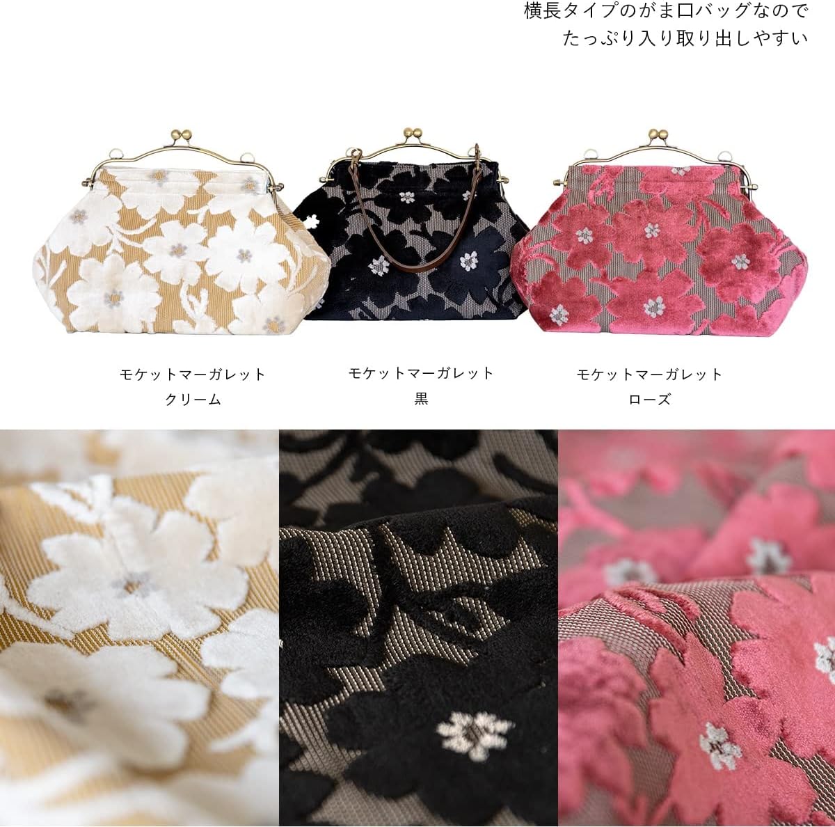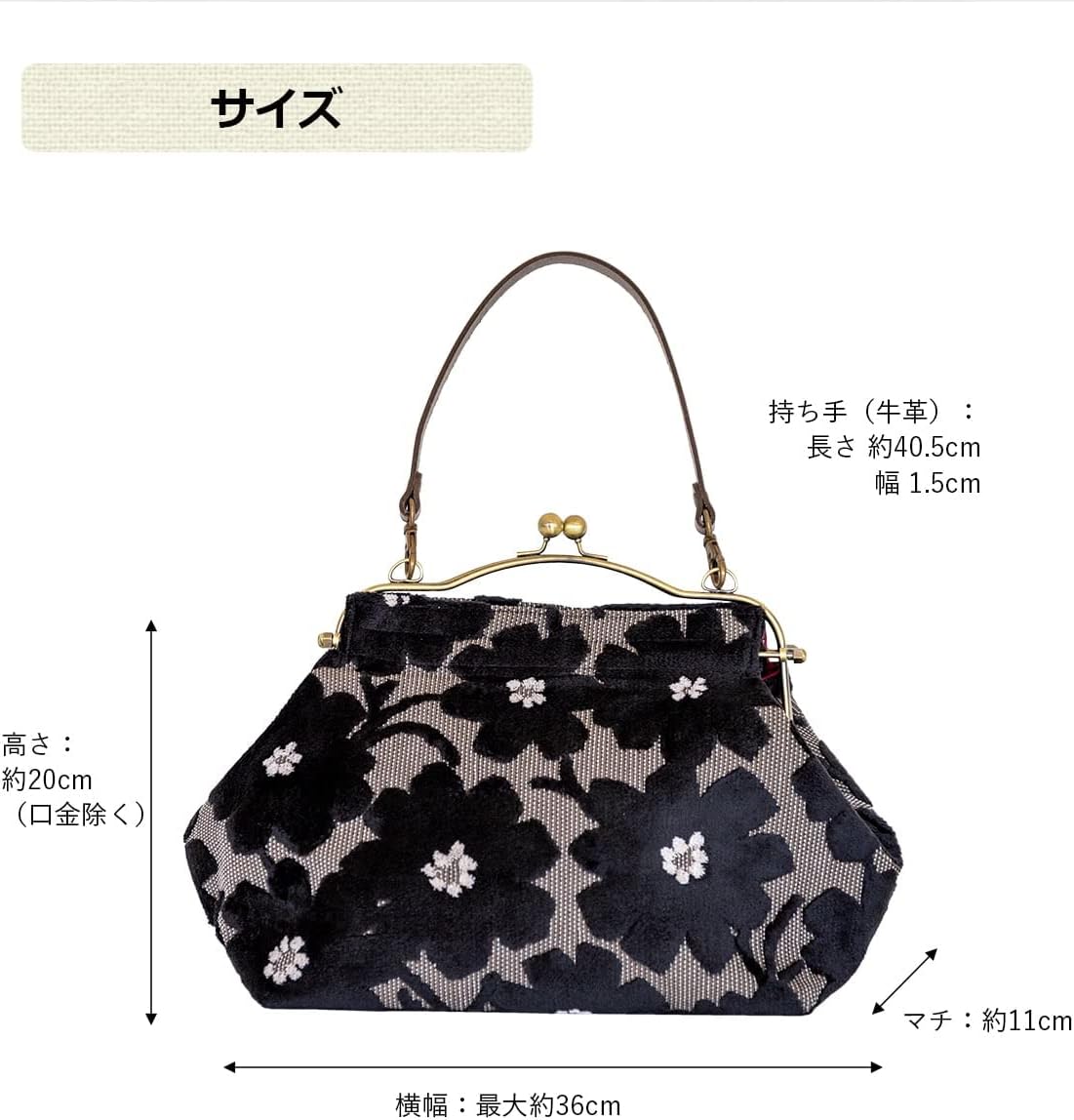 [Product Description] Tips have been changed from August 2021. The clasp handle has a D-ring and diagonal to prevent the nozzle from opening at the weight of the load. Retro and classical feel The color changes depending on the angle you view it, and the shade of margaret will appear. A little mature Onoichi series. The "Margaret" pattern of Iinokichi is made from jacquard pile. Woven with Nakaya pile of Nakayama Prefecture Takano Mouth (Mocket is a type of pile fabric) The pile fabric features a glossy sheen and texture. Fabric used for luxury sofa and carpet Oblong type with Benley opening A handbag type that can hold a long wallet. The core is inserted in the bottom gusset so it won't lose its shape even when you put your belongings. It has a cowhide leather handle so it can be worn over the shoulder. Recommended for everyday use, as well as a kimono bag. Interior pockets on both sides.