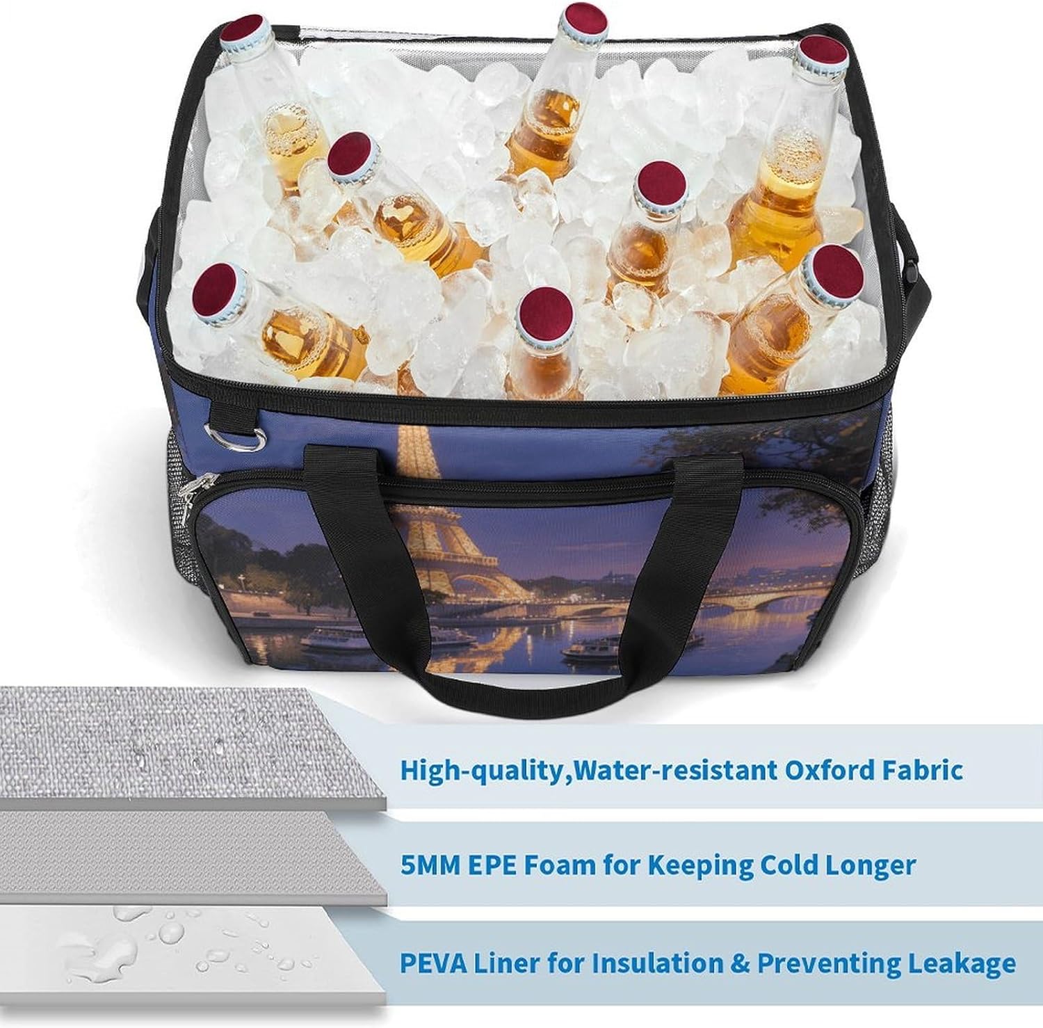 • LARGE CAPACITY & LIGHTWEIGHT: Eiffel Tower cooler backpack insulated waterproof cooler bag has a spacious interior (15.4x11.8x11.8 inches) to hold food containers, snacks, drinks, and fruits. Lightweight oxford fabric construction makes it easy to carry anywhere without adding bulk.