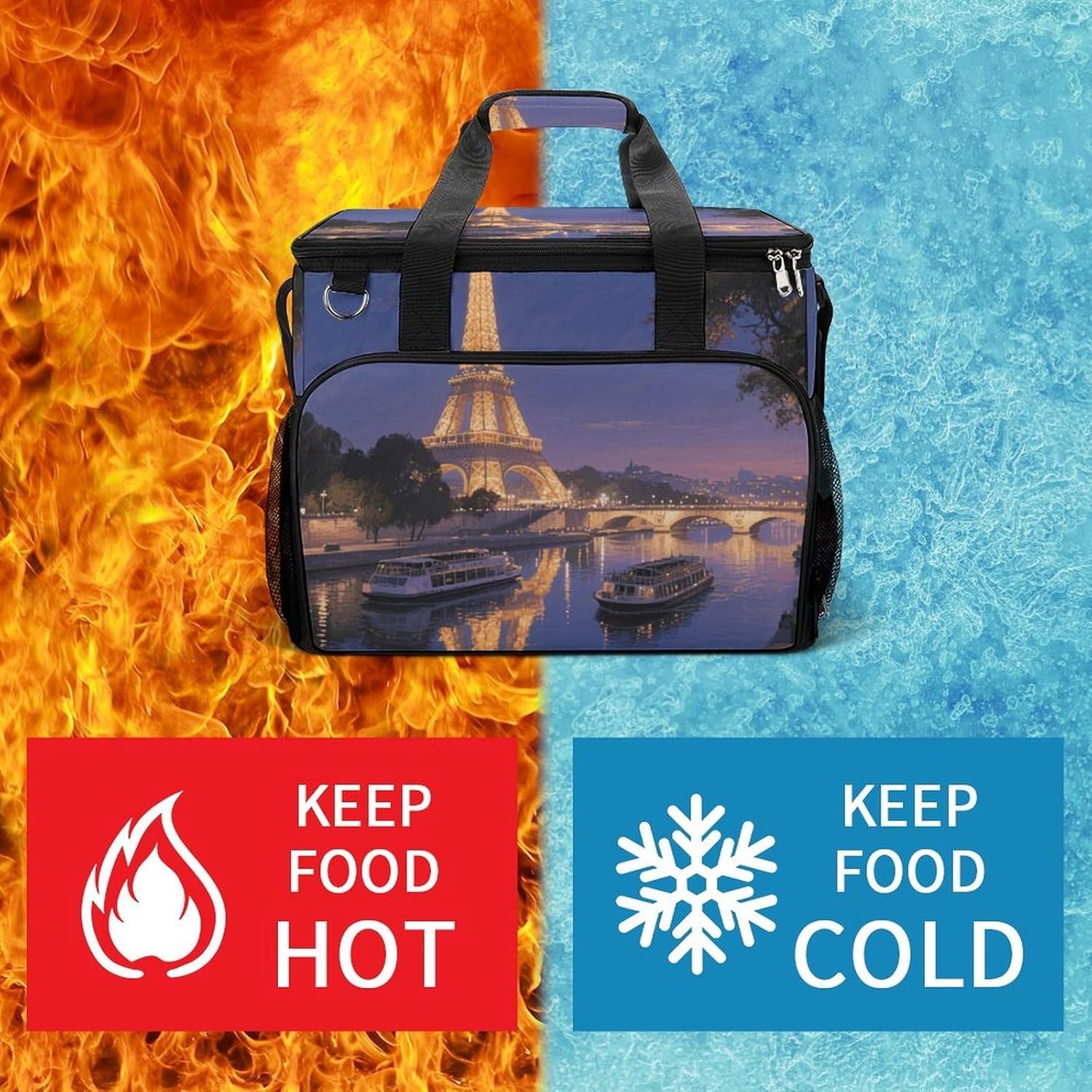 Take Your Meals Anywhere with Eiffel Tower Grocery BagsFood Container Carrier Oxford Fabric Picnic Bag Heat Retaining Food Bag Camping Cooler BBQ Accessories Cute Picnic Bag with Pockets Insulated Food Bag for Work Insulated Lunch Tote Bag Camping BagTemperature Control That WorksThe upgraded aluminum foil lining creates an effective thermal barrier. Your drinks stay refreshingly cold, and your hot dishes maintain their warmth for hours. No more lukewarm meals during outdoor outings.Thoughtful Storage DesignTwo side mesh pockets - Perfect for water bottles or umbrellasFront zippered pocket - Keeps keys, phone, or condiments organizedInternal mesh pocket - Stores utensils, napkins, and small essentialsMain compartment - Spacious enough for food containers and snacksBuilt for Daily AdventuresConstructed from high-density oxford fabric with reinforced stitching at stress points. The double zippers are sturdy and smooth-operating. Reinforced handles let you carry heavy loads with confidence.Carry Your WayHandles for quick grabbingStands upright for easy packing and accessPerfect For:Picnics in the parkBeach days and pool partiesCamping and hiking tripsOutdoor concerts and festivalsDaily work lunchesGym and fitness classesRoad trips and travelGrocery shoppingSpecifications:Dimensions: 15.4 x 11.8 x 11.8 inchesMaterial: High-density Oxford fabricLining: Aluminum foil (insulated)Closure: Sturdy double zippersPockets: 2 side mesh, 1 front zipper, 1 internal meshCare: Hand wash or machine wash, do not bleachNote: Food containers and utensils shown in images are not included.