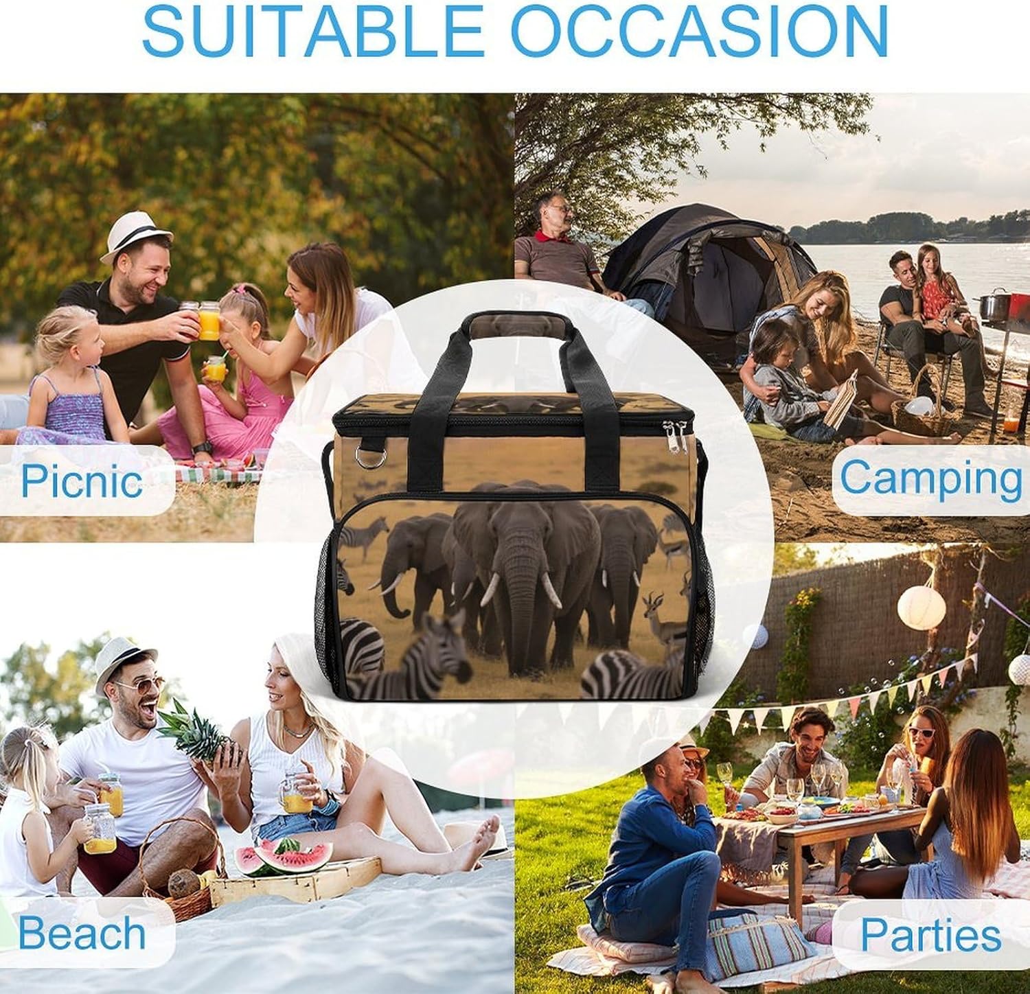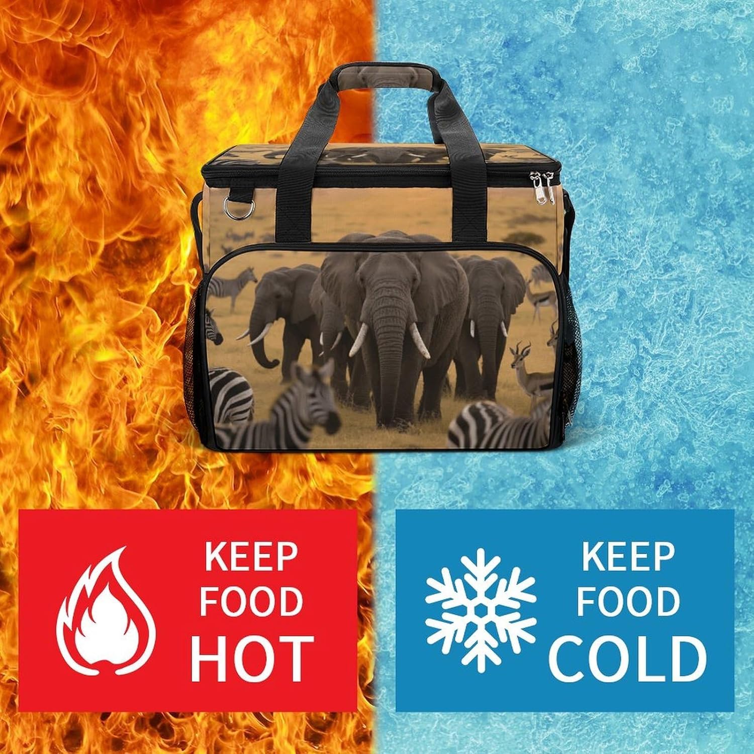 Take Your Meals Anywhere with Elephants Grocery BagsFood Container Carrier Oxford Fabric Picnic Bag Heat Retaining Food Bag Camping Cooler BBQ Accessories Cute Picnic Bag with Pockets Insulated Food Bag for Work Insulated Lunch Tote Bag Camping BagTemperature Control That WorksThe upgraded aluminum foil lining creates an effective thermal barrier. Your drinks stay refreshingly cold, and your hot dishes maintain their warmth for hours. No more lukewarm meals during outdoor outings.Thoughtful Storage DesignTwo side mesh pockets - Perfect for water bottles or umbrellasFront zippered pocket - Keeps keys, phone, or condiments organizedInternal mesh pocket - Stores utensils, napkins, and small essentialsMain compartment - Spacious enough for food containers and snacksBuilt for Daily AdventuresConstructed from high-density oxford fabric with reinforced stitching at stress points. The double zippers are sturdy and smooth-operating. Reinforced handles let you carry heavy loads with confidence.Carry Your WayHandles for quick grabbingStands upright for easy packing and accessPerfect For:Picnics in the parkBeach days and pool partiesCamping and hiking tripsOutdoor concerts and festivalsDaily work lunchesGym and fitness classesRoad trips and travelGrocery shoppingSpecifications:Dimensions: 15.4 x 11.8 x 11.8 inchesMaterial: High-density Oxford fabricLining: Aluminum foil (insulated)Closure: Sturdy double zippersPockets: 2 side mesh, 1 front zipper, 1 internal meshCare: Hand wash or machine wash, do not bleachNote: Food containers and utensils shown in images are not included.