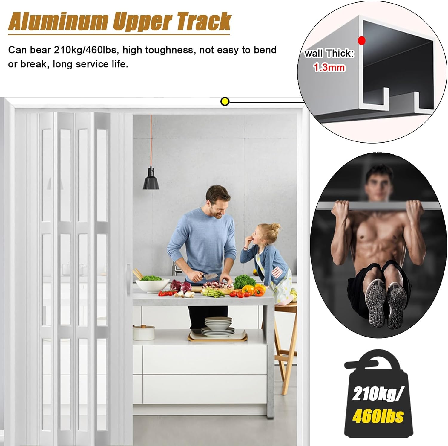 Are You Still Worried About These? -----Kitchen smoke flying everywhere?-----Outdoor noise pollution, can not sleep?-----Indoor cold in winter and hot in ?-----Toilet odor floating around?Hurry up to bring our Folding Sliding Door home! It can let you say goodbye to the trouble, enjoy a comfortable life ...... What Are The Specifications of Our Accordion Folding Doors?→ Material: Aluminium and Acrylic→ Length: Customizable→ Height: Customizable→ Single Door Panel Width: 15cm(5.9in)→ Door Leaf Thickness: 12.5mm→ Includes all door hardware kits Compared With Ordinary Sliding Doors, What Are Our Advantages:→ Blocking oil smoke, windproof and temperature resistance, sound insulation and noise reduction, dry and wet separation.→ Aluminum alloy goal post, light weight, no rust, wear-resistant, not easy to deform.→ Aluminum alloy upper rail, super load-bearing, not easy to bend or break, long service life.→ A good choice for separating bedroom and bathroom, kitchen and living room.→ As a room divider barrier to keep pets (especially dogs and cats) out.→ Bottom overhang 1-2cm(2/5"-4/5"), does not hurt the floor.→ Aluminum alloy pulley, silent and smooth, no jamming.→ Folding door leaf, suitable for narrow space.→ Can be used in place of a camper bathroom door.→ No track on the ground, no mixing feet, easy to clean.→ Hidden magnetic strip, can keep open or closed by itself. What will you get?→ 1 x Interior Folding Door Warm Tips?→ 1. Manual measurement, there will be 1-3cm error, please understand.→ 2. If a slight odor is normal, it will disappear within two to three .