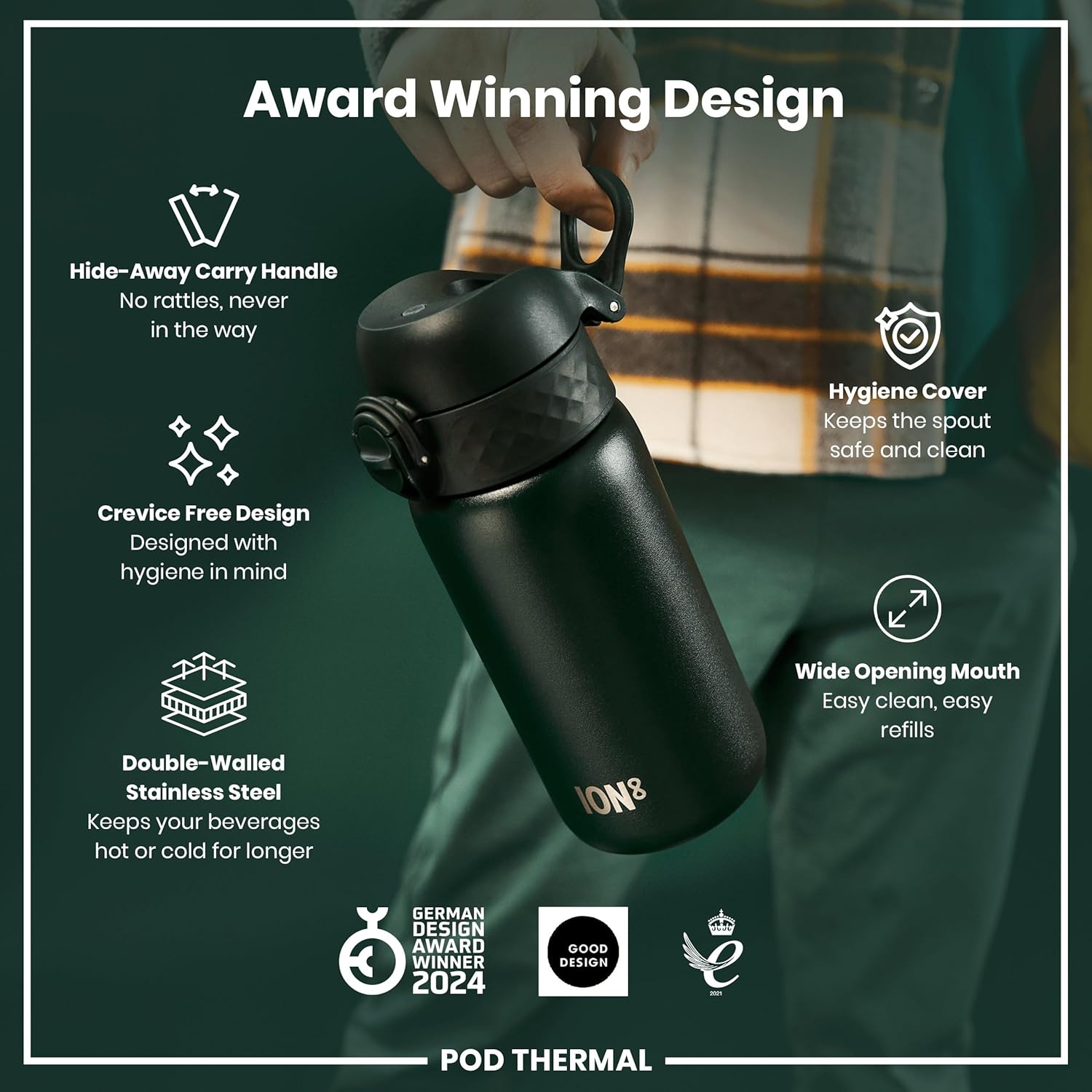 Meet the Ion8 Leak Proof Water Bottle, your perfect hydration companion. This vacuum insulated bottle is designed to keep your drinks at the ideal temperature for hours. Whether you prefer your beverages hot or cold, this 320ml (11oz) bottle ensures they stay that way, thanks to its double wall ThermoShield insulation. The Ion8 water bottle is 100% leak proof, assuring you of a mess-free experience. It's not just about function, but also about convenience. With a hidden, integrated carry handle, this bottle is ready to accompany you wherever you go - be it school, office, gym, or any outdoor adventure. What sets this Ion8 water bottle apart is its vented, smooth liquid flow that ensures rapid hydration. Its width is no more than a can, making it a perfect fit for any cup holder or backpack. The durable, scratch resistant textured powder paint for grip adds to its user-friendly design, making it easy to hold during your busiest days. Crafted from food-safe stainless steel, this bottle is odour resistant, maintaining the freshness and flavour of your drinks. Cleaning it is a breeze, making it a practical choice for everyday use. The Ion8 Leak Proof Water Bottle is more than just a water bottle. It's a testament to Ion8's commitment to combining style, function, and convenience. With its easy-to-open feature and clean, hygienic spout, it's designed with your comfort in mind. This is not just a water bottle. It's a lifestyle choice for those who value health and convenience. Experience the Ion8 difference today with this Leak Proof Water Bottle.