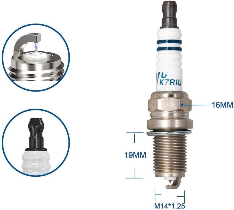 "Electrode Material: IrauritaMounting Base: FlatCalorific Value: HighManufacturer Part Number: K7RIUHexagon size : 16mm Thread reach :19mmThread size:14mmCalorific value : 7"